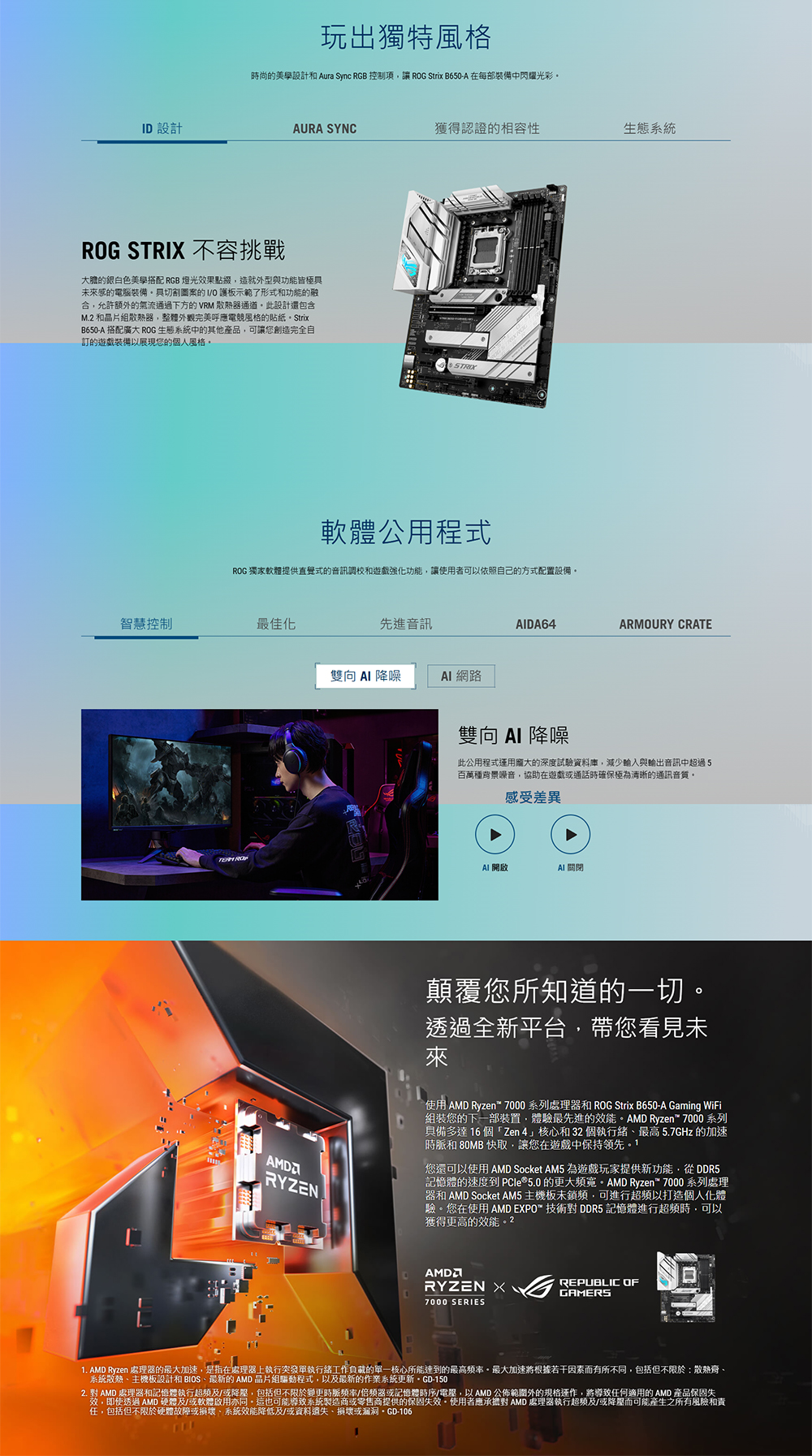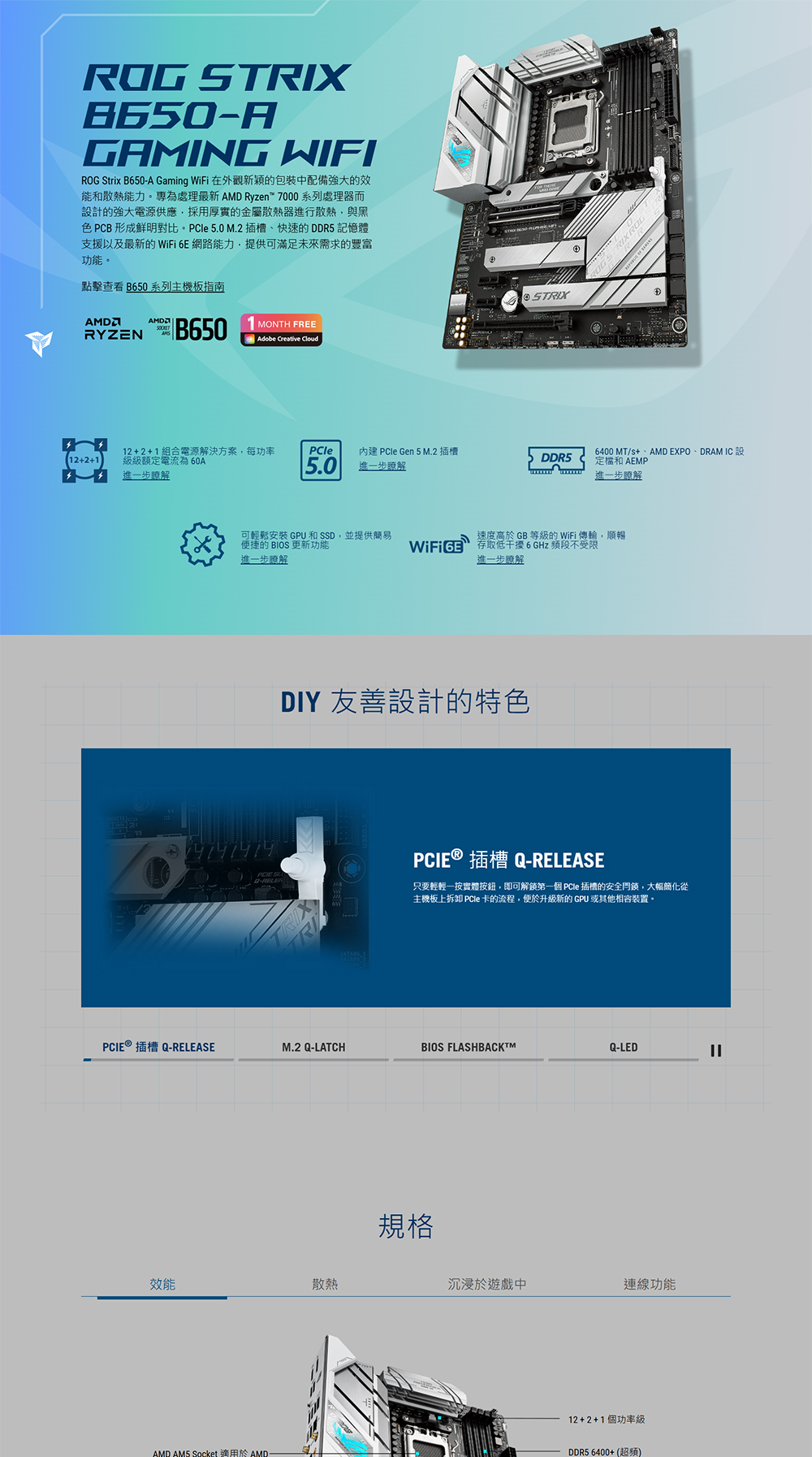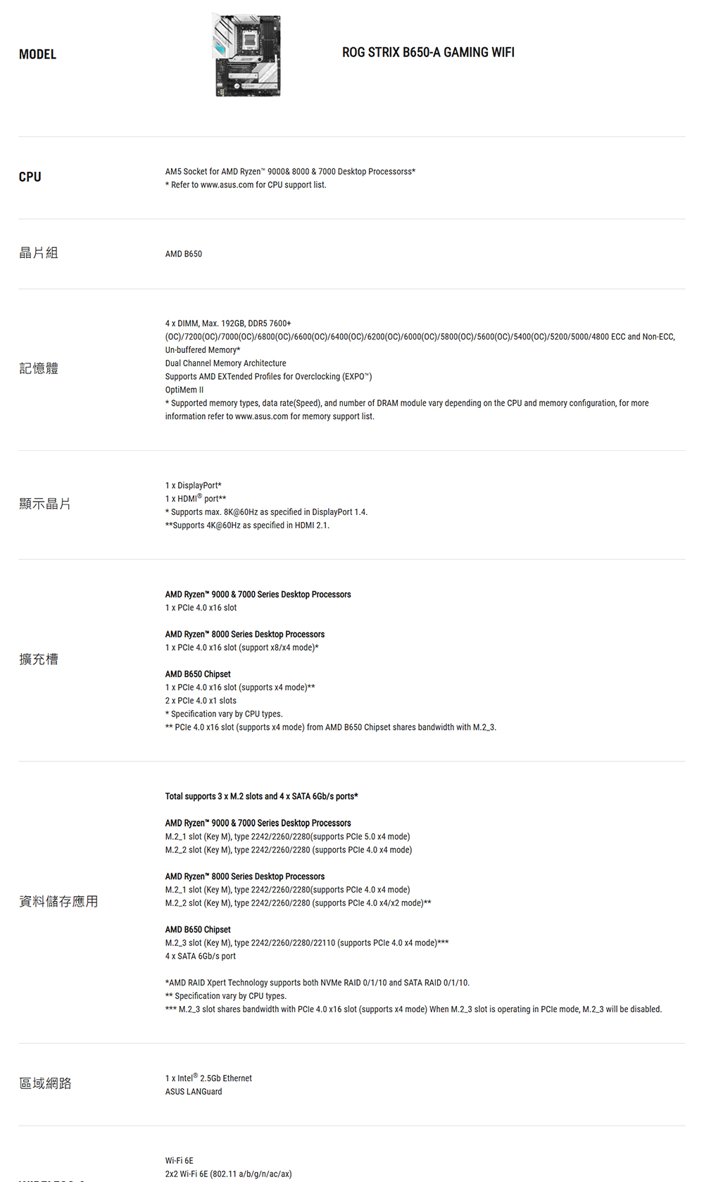 [ASUS華碩]《ROG-STRIX-B650-A-GAMING WIFI》ATX/1H1P/Intel2.5G+Wi-Fi 6E/註五年