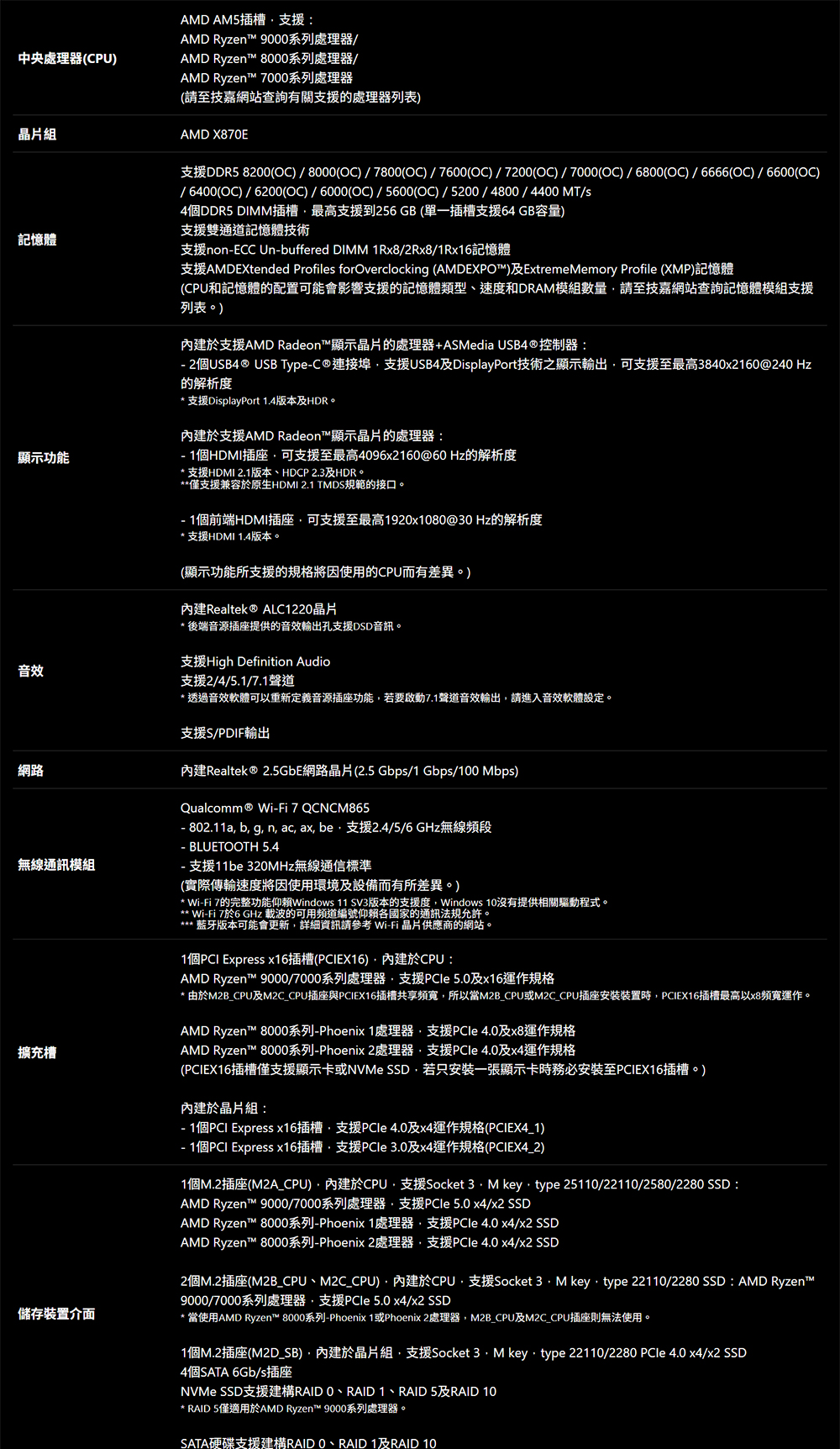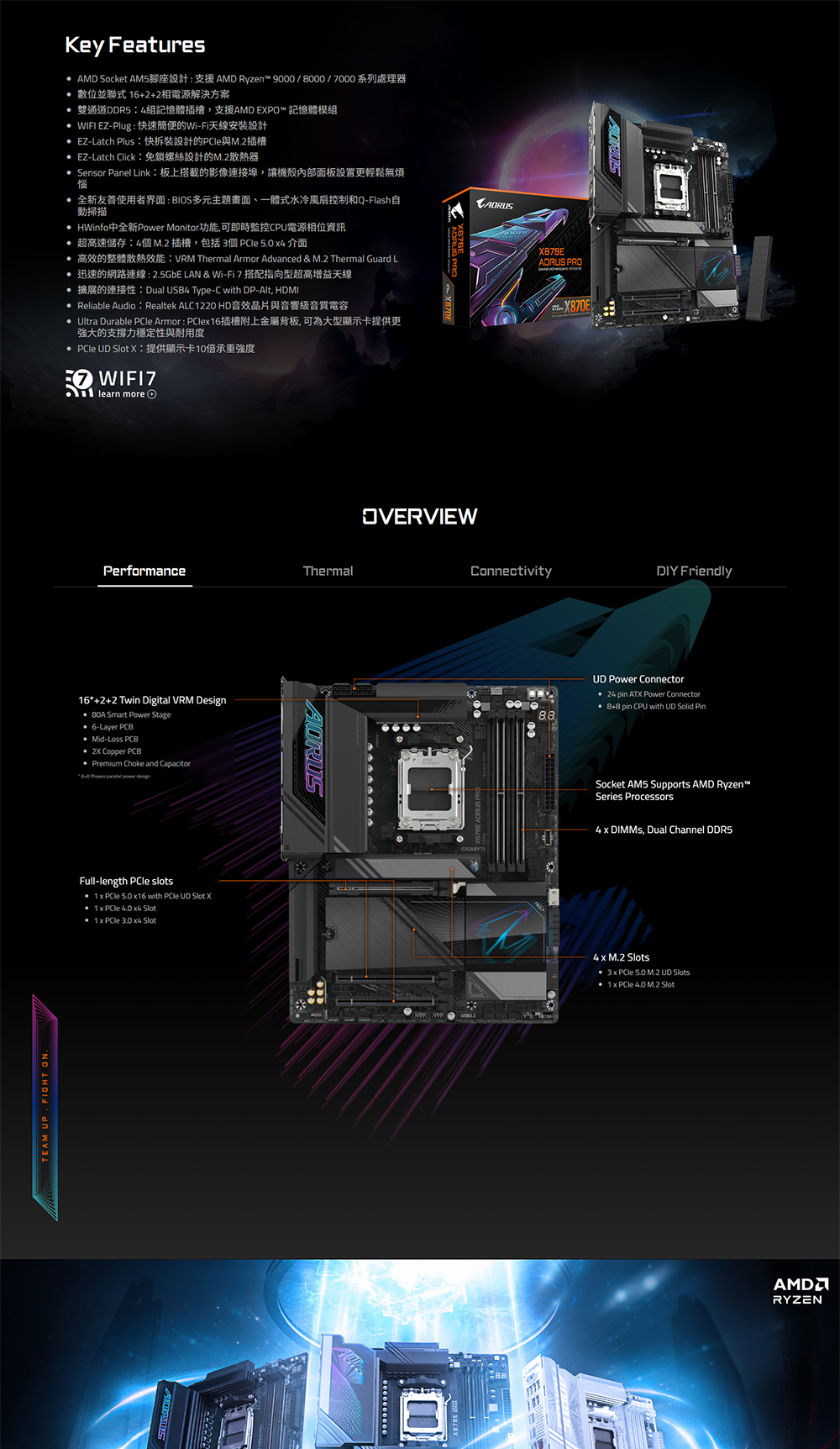 [GIGABYTE 技嘉]《X870E-AORUS-PRO》ATX/Realtek2.5G+Wi-Fi 7/註五年