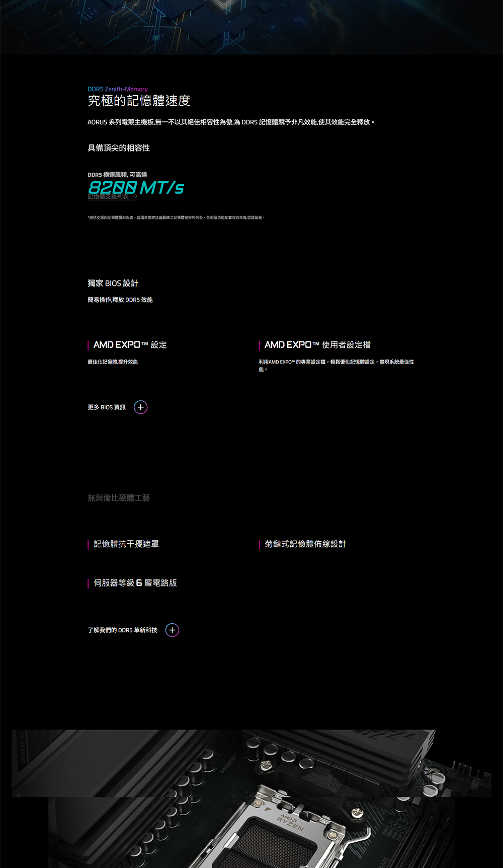 雙通道DDR5:4組記憶體插槽,支援AMD EXPO™ 記憶體模組