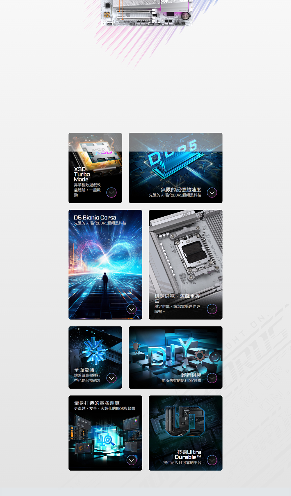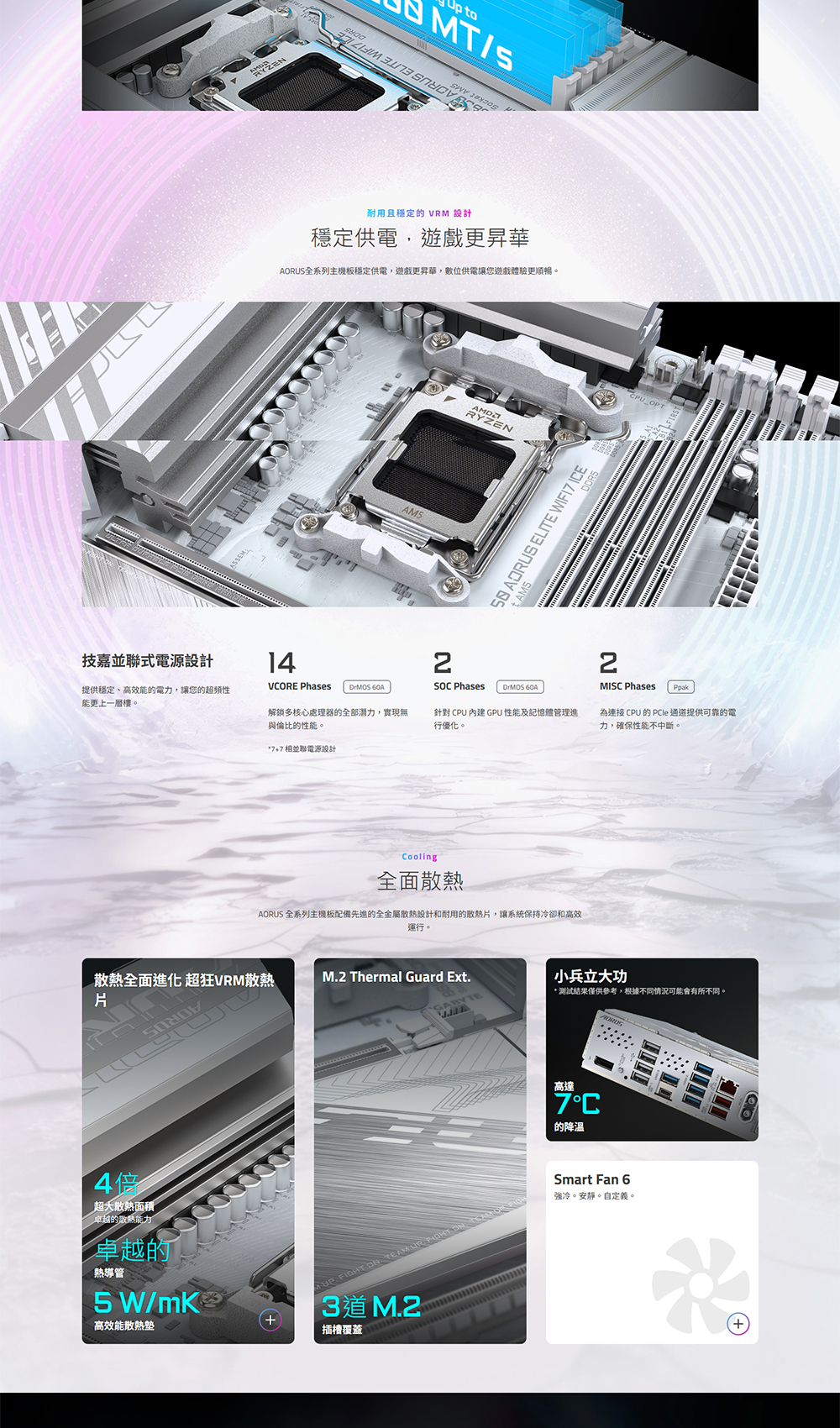 AMD Socket AM5腳座設計 : 支援 AMD Ryzen™ 9000 / 8000 / 7000 系列處理器