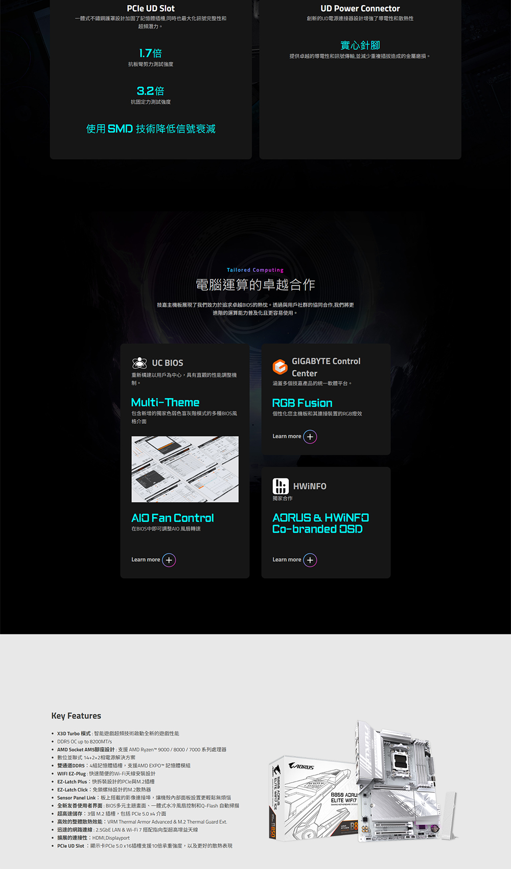[GIGABYTE 技嘉]《B850-AORUS-ELITE-WIFI7-ICE》冰魄白/ATX/Realtek2.5G+Wi-Fi 7/註五年