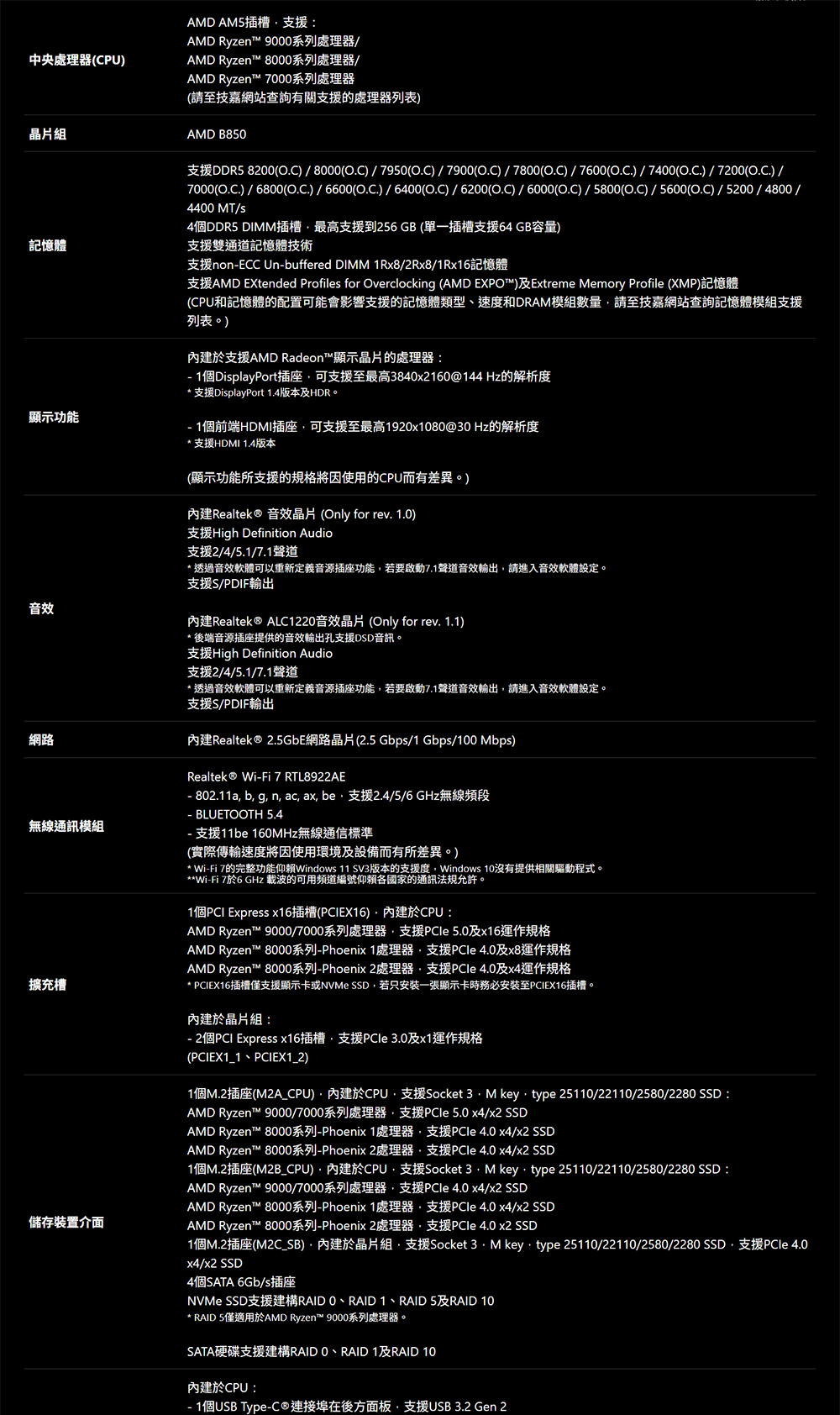 雙通道DDR5 : 4組記憶體插槽,支援AMD EXPO™ 記憶體模組
