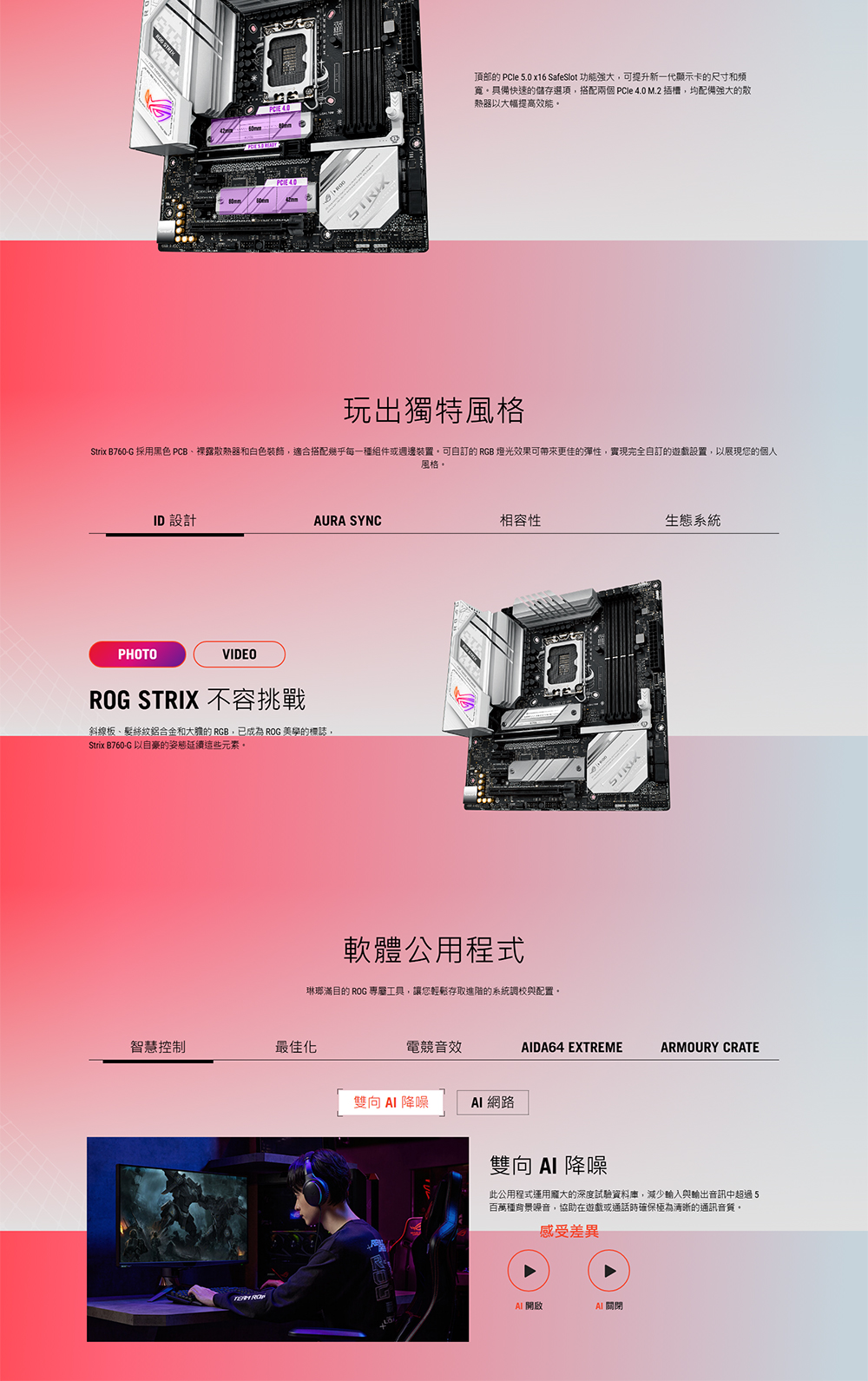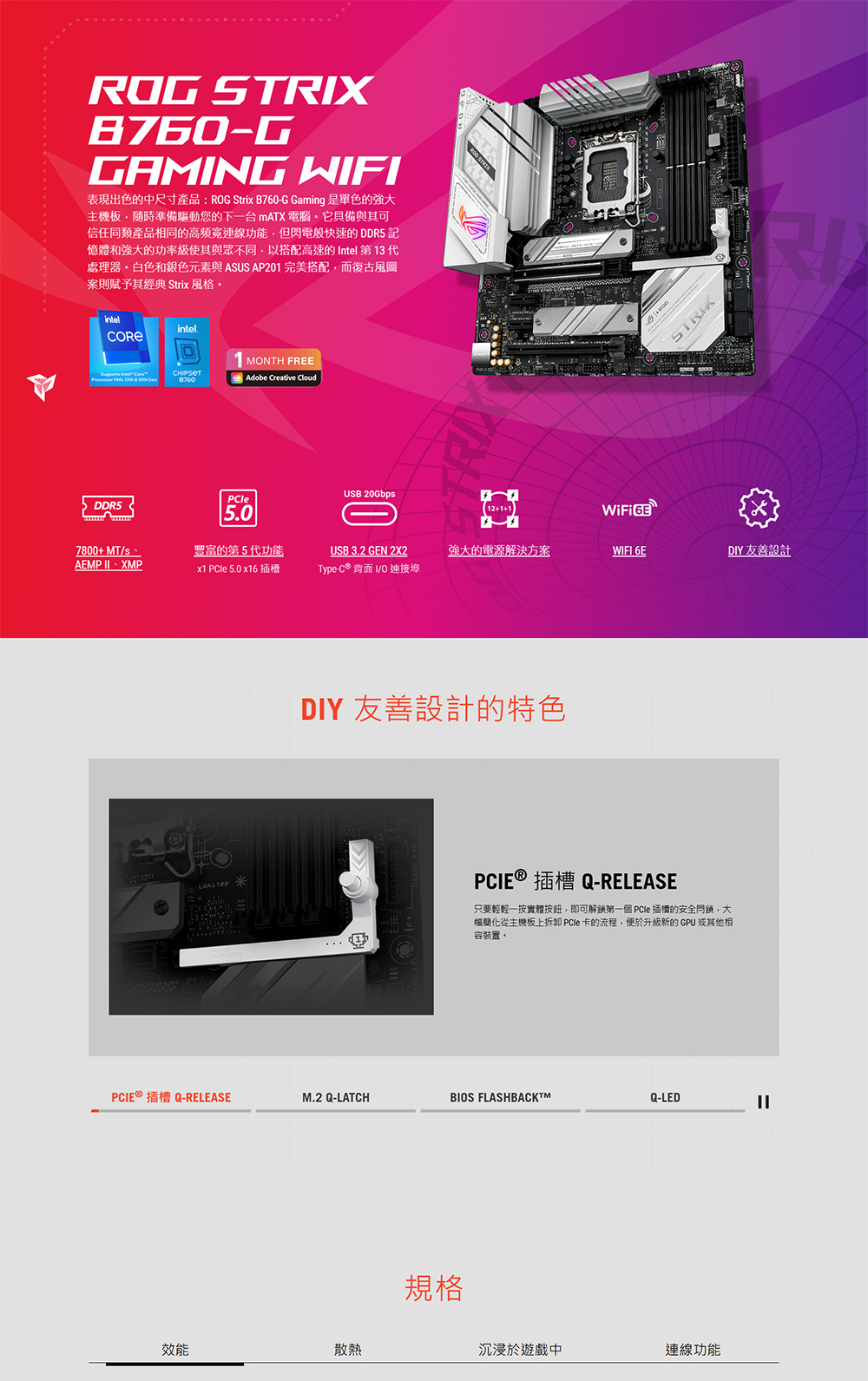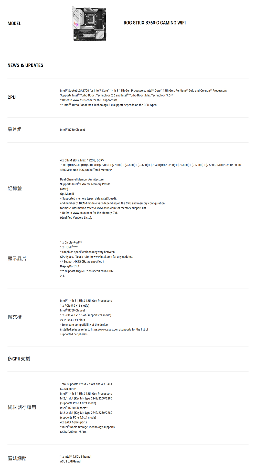 [ASUS華碩]《ROG STRIX B760-G GAMING WIFI》M-ATX/Intel 2.5Gb+無線/註五年)