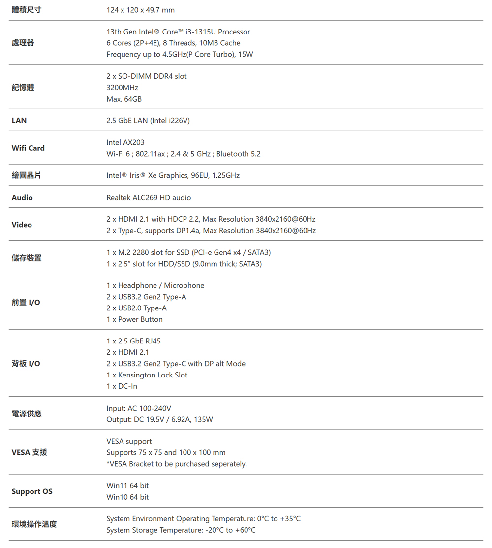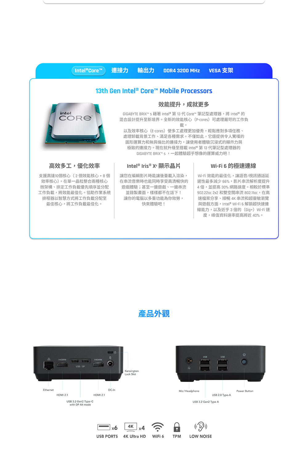[GIGABYTE 技嘉]《GB-BRI3H-1315》 Intel i3-1315U / 2xHDMI 2.1 / WIFI+藍牙 / 三年保