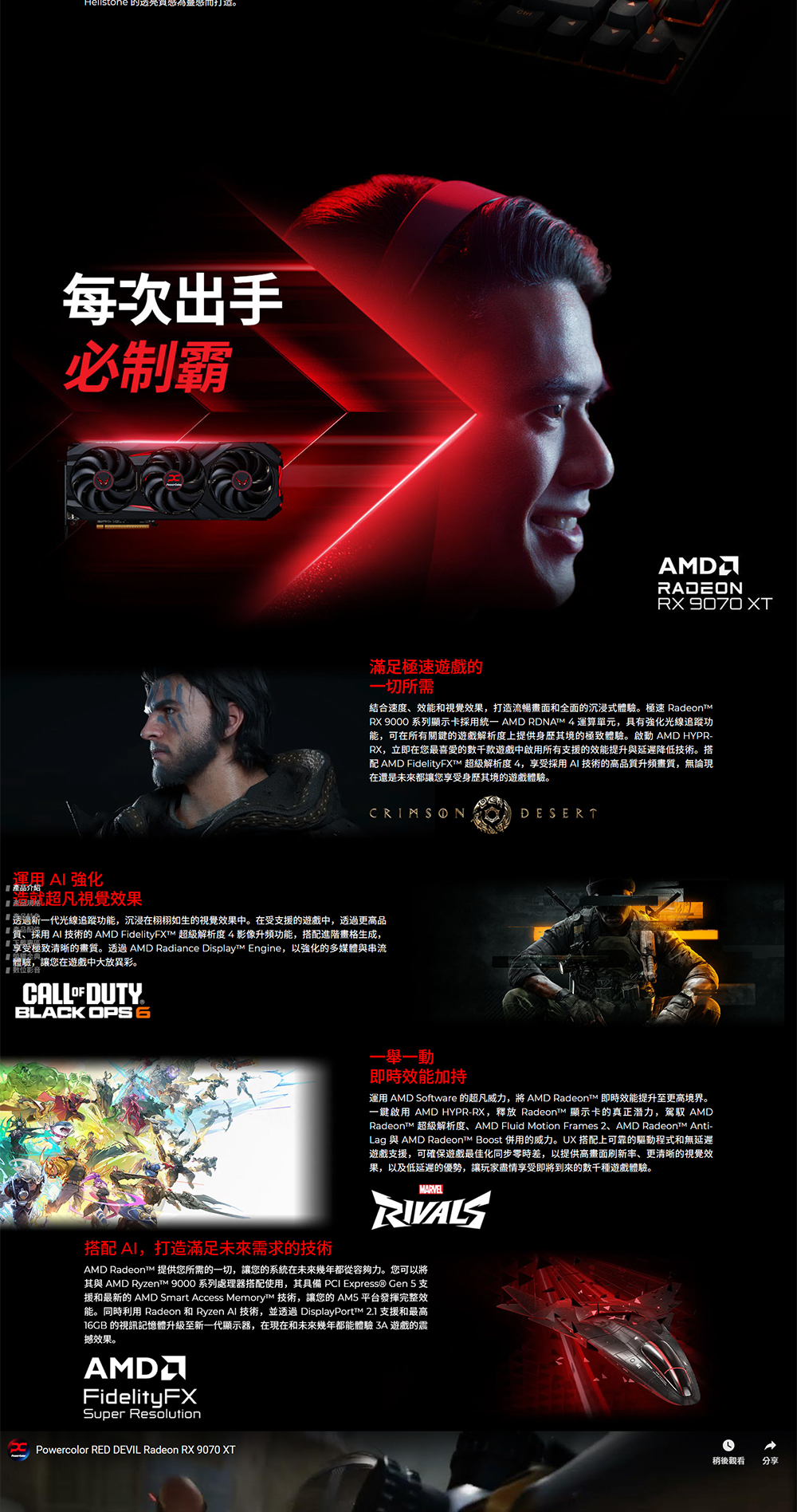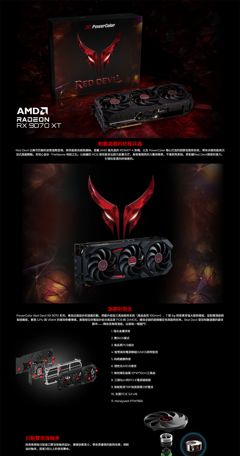 Red Devil 以無可匹敵的姿態強勢登場,將效能推向極致巔峰。搭載 AMD 最先進的 RDNA™ 4 架構,以及 PowerColor 精心打造的超靜音散熱系統,帶來卓越效能與沉浸式遊戲體驗。