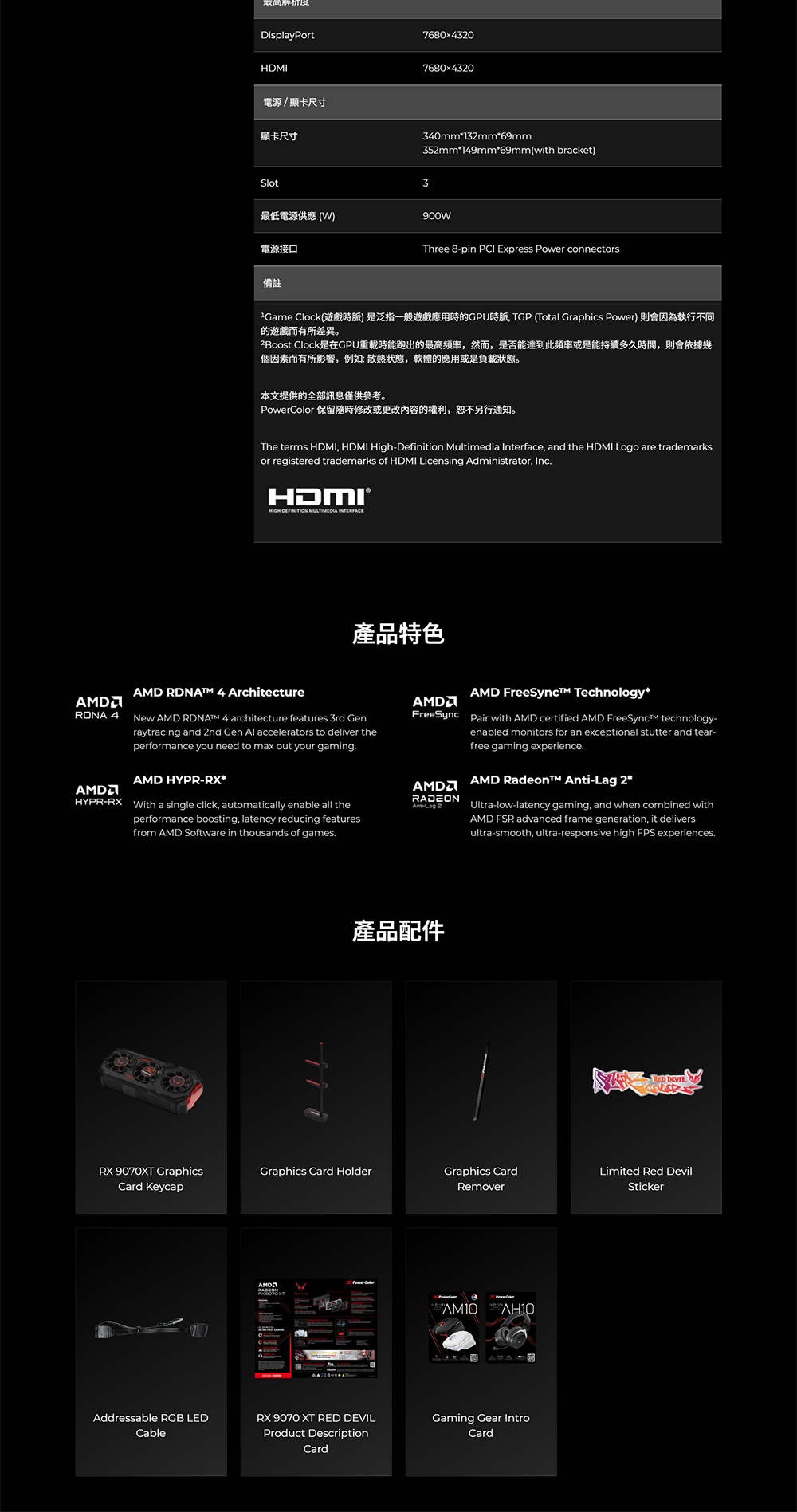 [PowerColor 撼訊]《紅魔 Red Devil RX9070XT 16G-E/OC》3060MHz/34cm/三風扇/保三年