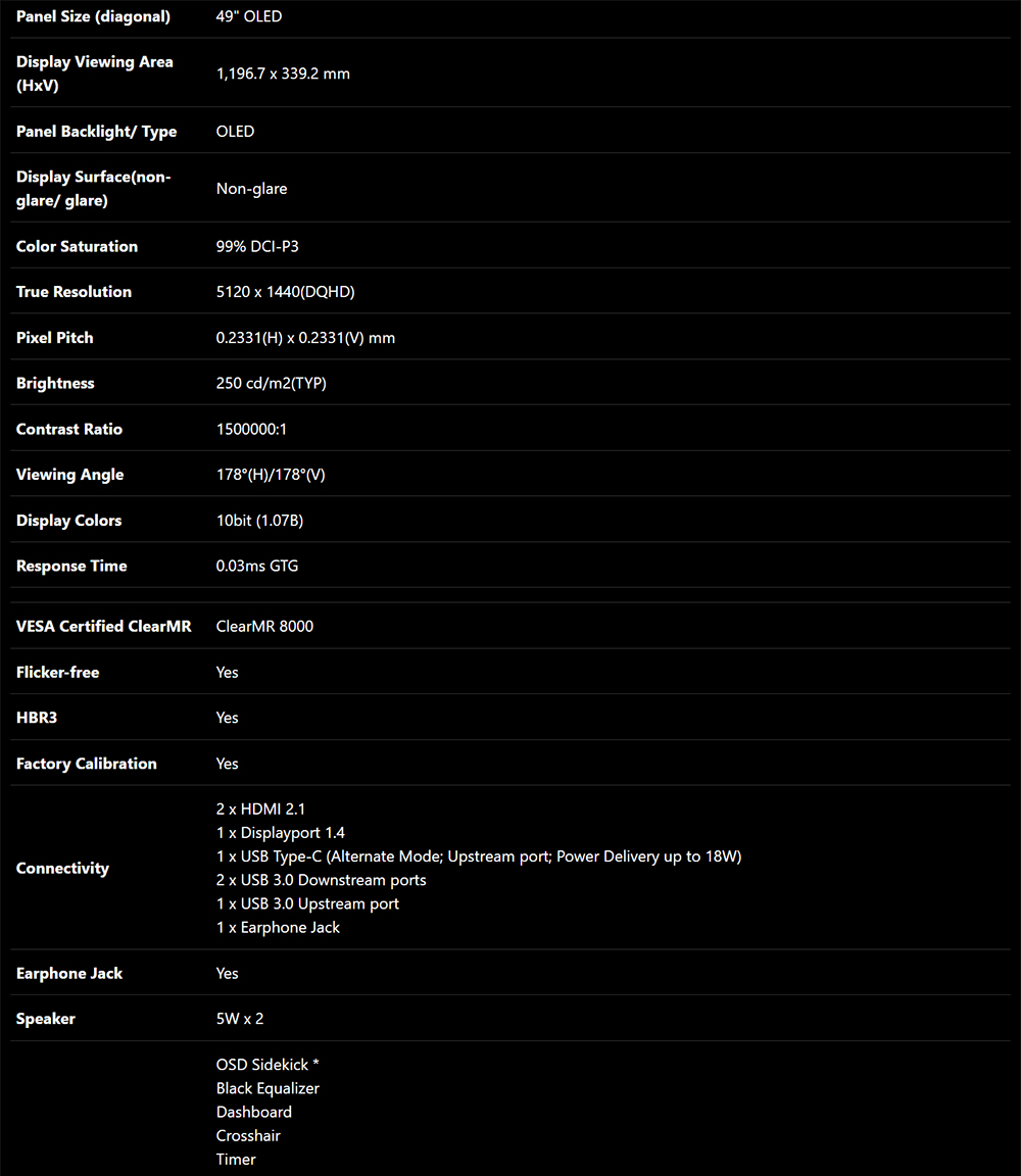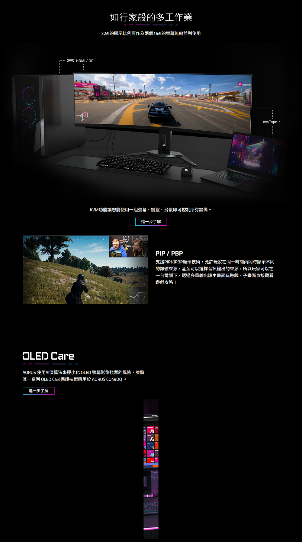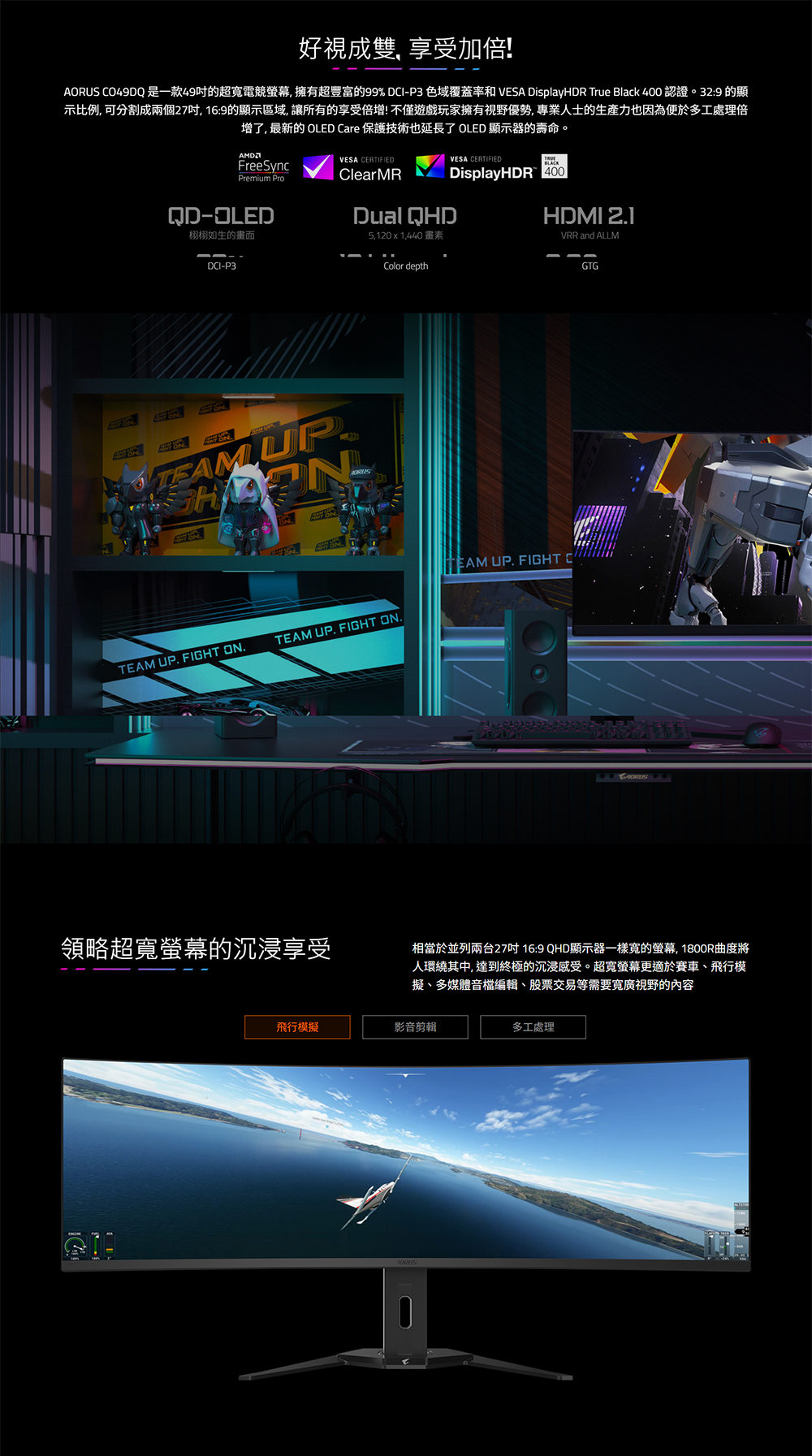 [GIGABYTE 技嘉]《CO49DQ》49型曲面/5120*1440/0.03ms/144Hz/QD-OLED/Type-C/Display-port/HDMI/USB3.0 可指送