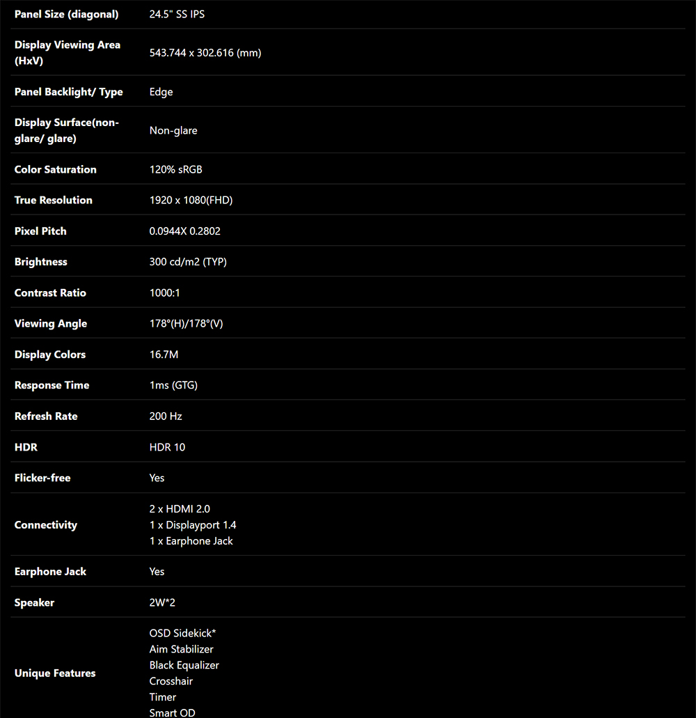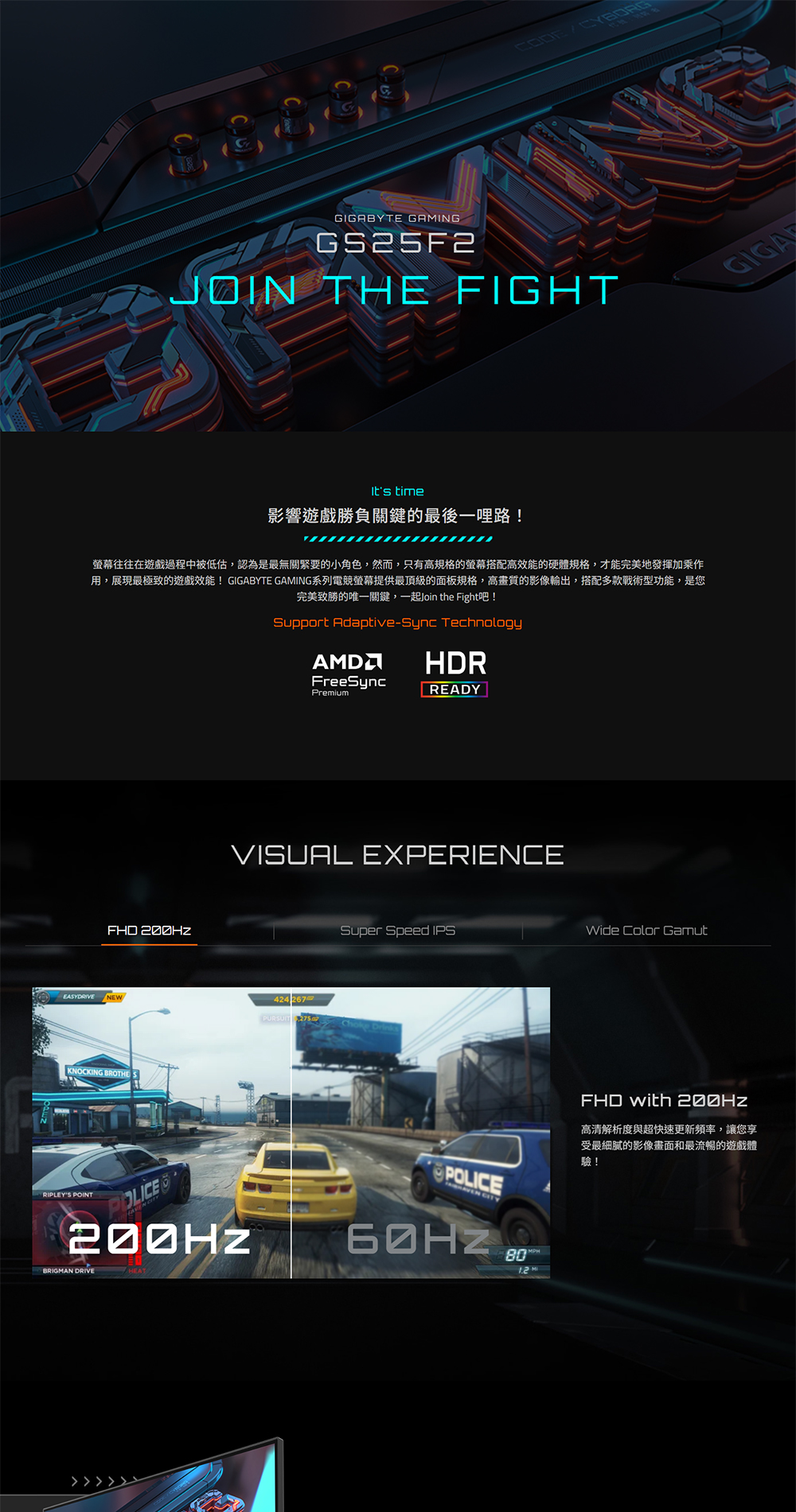 [GIGABYTE 技嘉]《GS25F2 》SS IPS/1ms/200Hz/HDR 10/FreeSync Premium/黑平衡技術/萊因2.0認證/DP/HDMI/內建喇叭/三年保