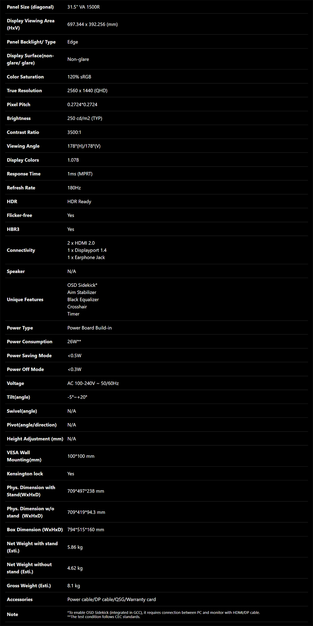 [GIGABYTE 技嘉]《GS32QCA》(32型/2K/180Hz/1ms/HDMI/DP/VA/1500R)