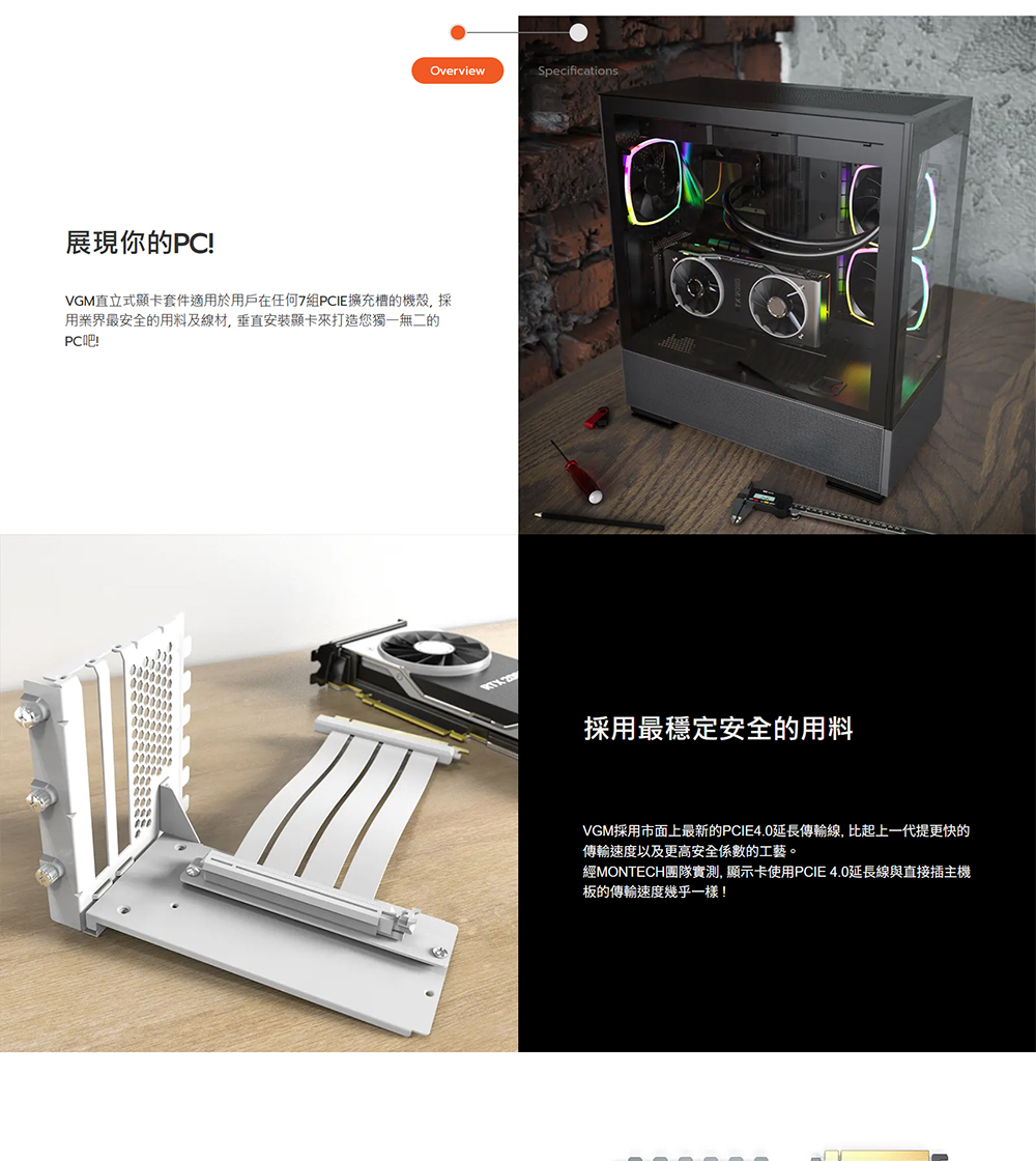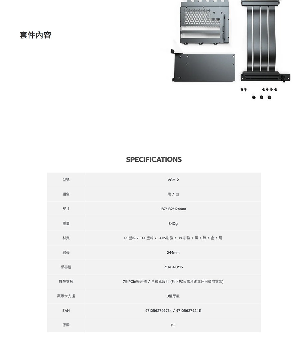 [MONTECH 君主]《VGM 直立式顯卡套件 白》通用型/含PCIE 4.0延長線/200mm/直立式顯卡支架
