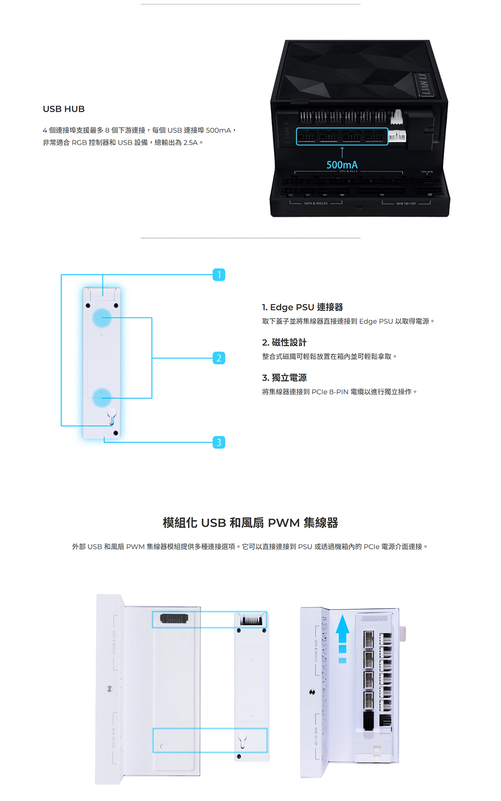 [LIAN LI 聯力]《USB HUB 黑》 USB&風扇擴充模組 / 需PCIe 8PIN供電 / 可用於EDGE金牌750/850或一般機殼