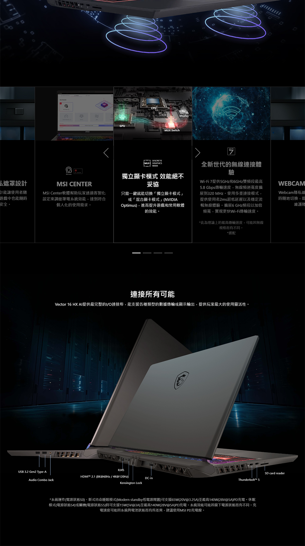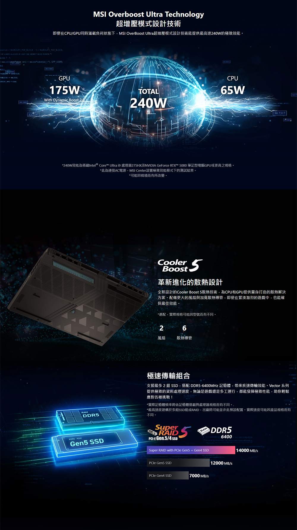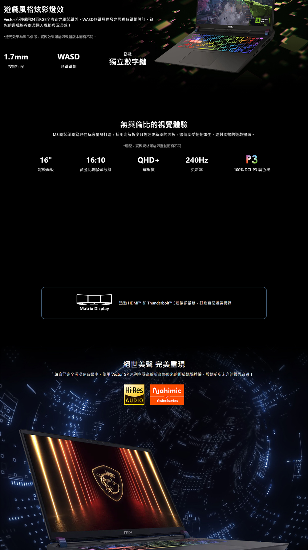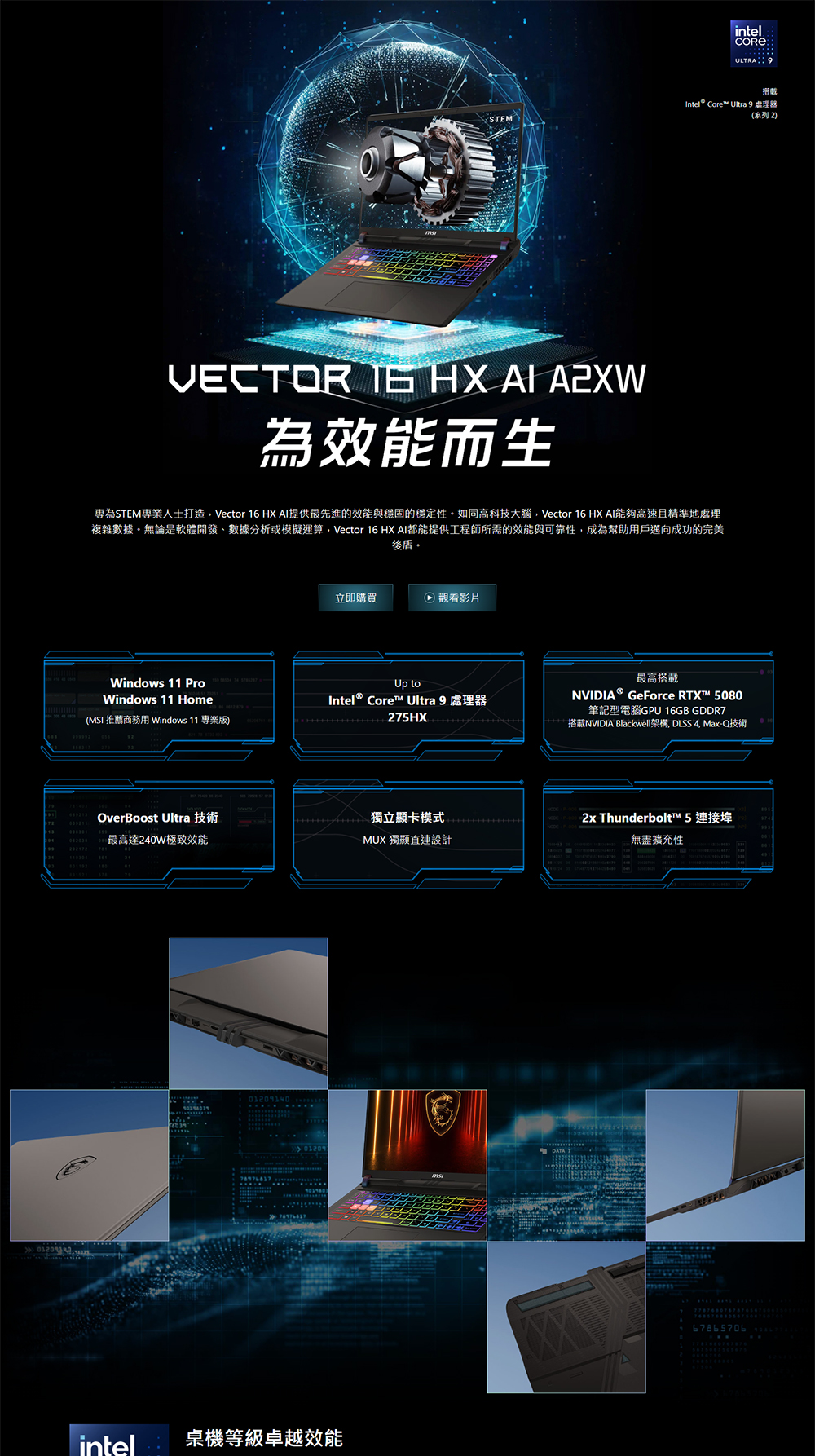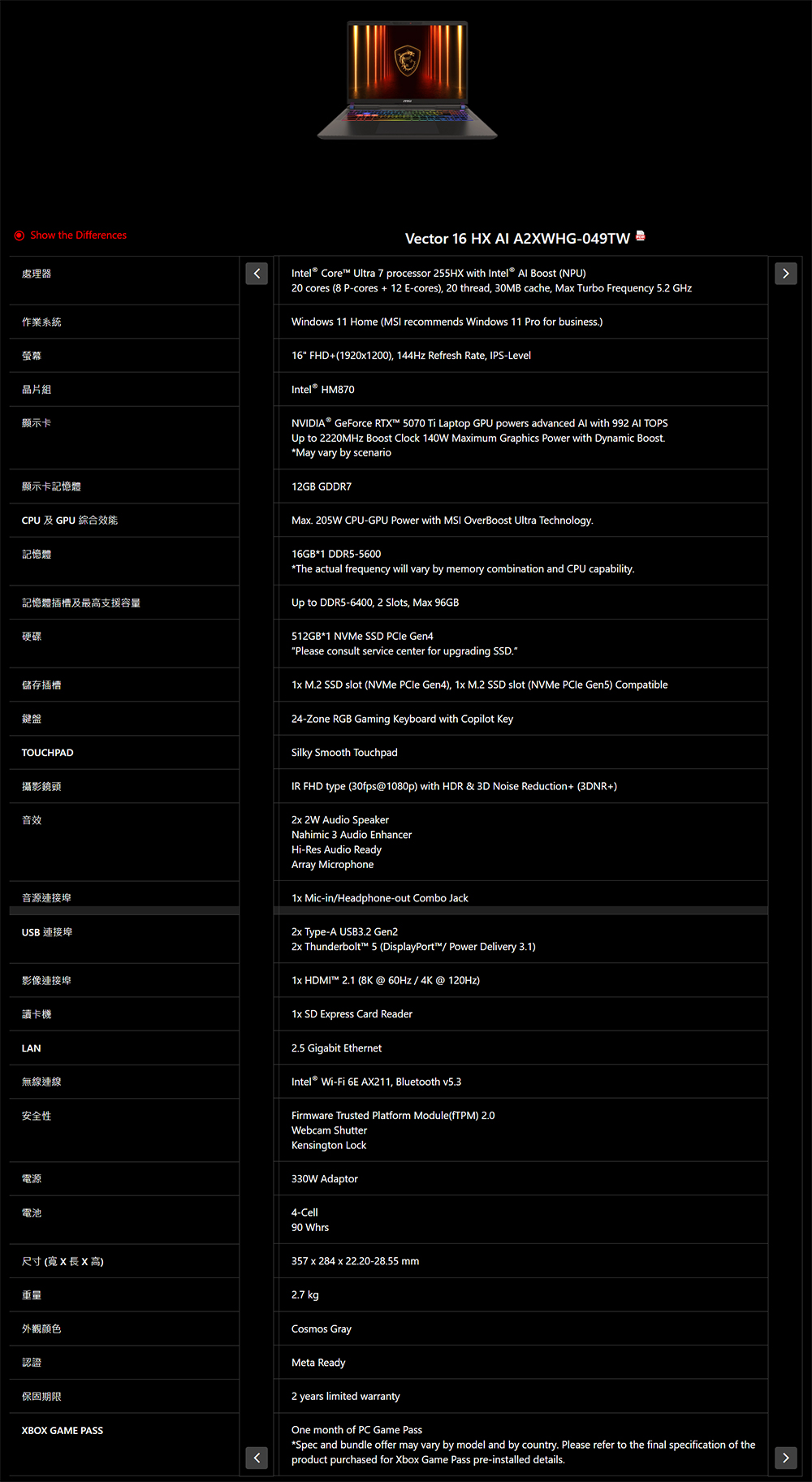 [MSI 微星]《Vector 16 HX AI-A2XWHG-049TW》16吋/FHD+/144Hz/Ultra 7-255HX/16G/512G PCIe/RTX5070Ti-12G/Win11