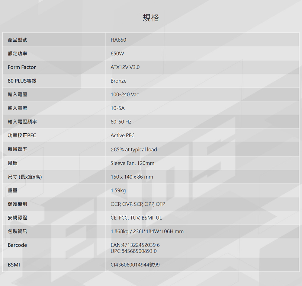 [FSP全漢]《聖武士 650W》ATX3.0 銅牌/直出/全日系/5年保 (HA-650)