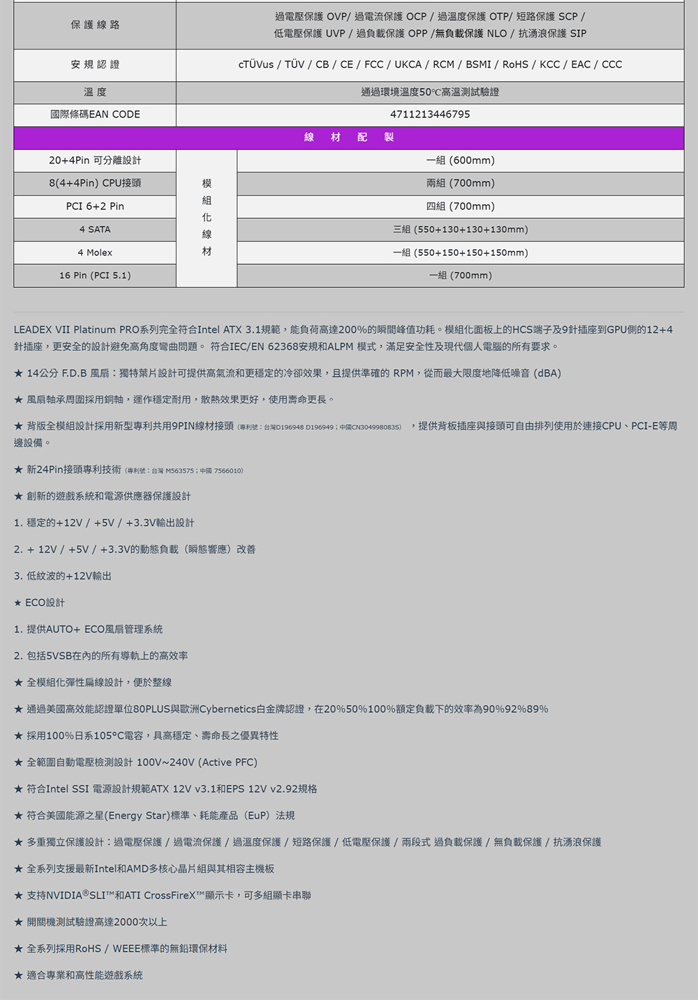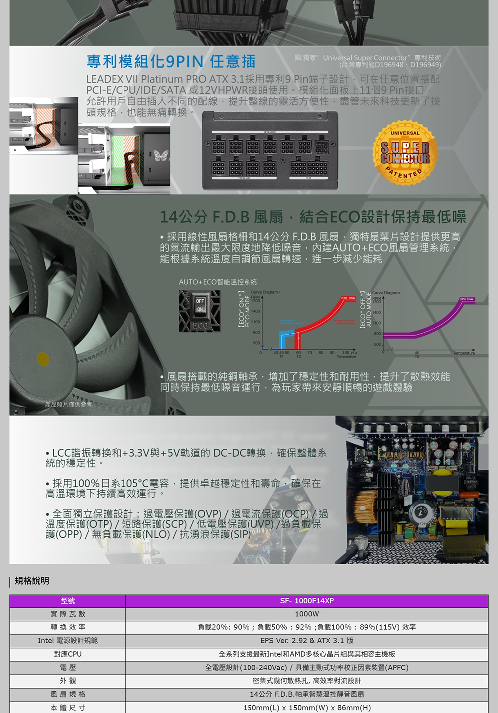 [SuperFlower振華]《LEADEX VII PRO 1000W 白》雙8/白金/全模/ATX3.1(PCIe 5.1)/全日系/10年保SF-1000F14XP-w