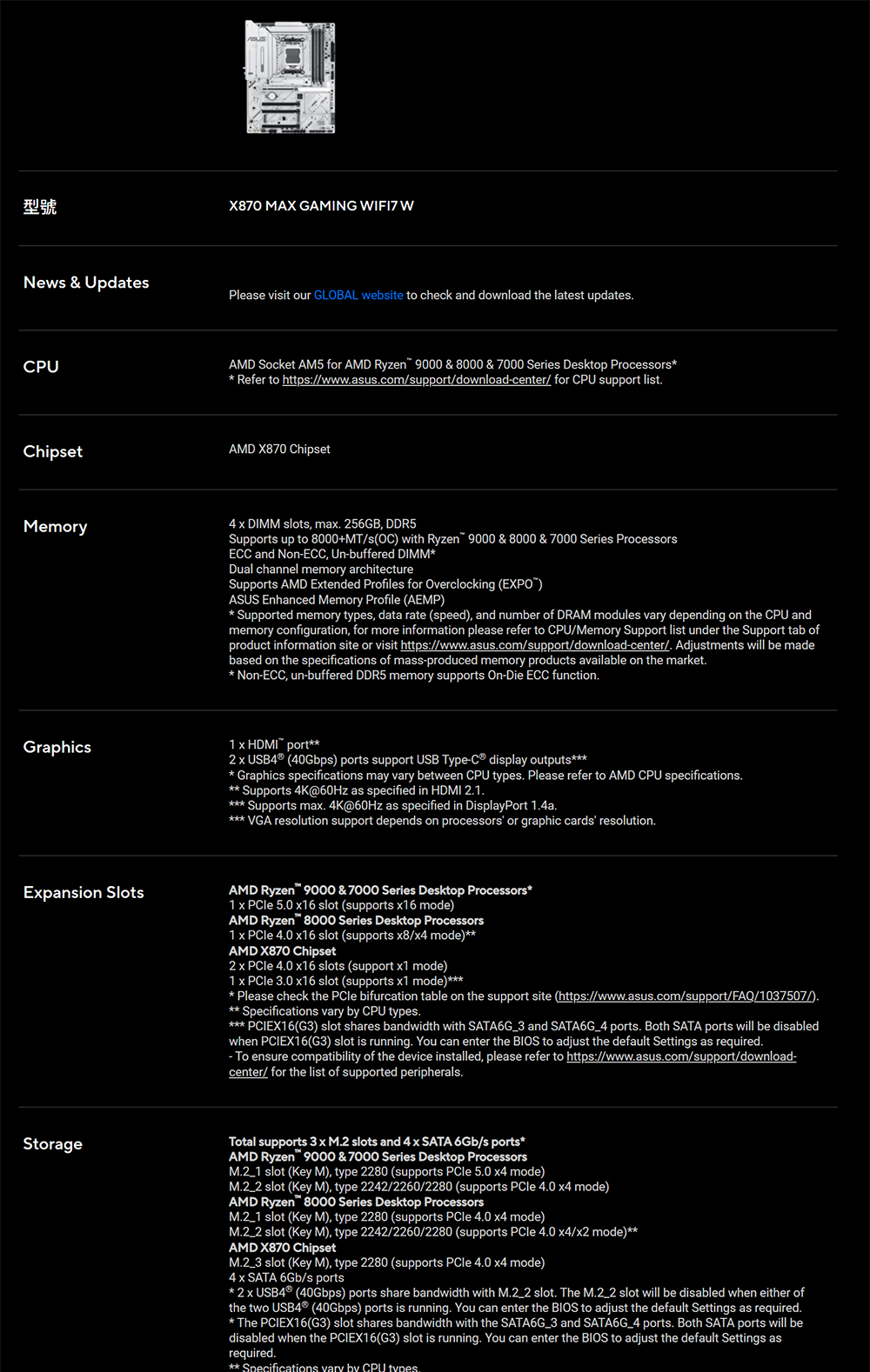 [ASUS華碩]《X870-MAX-GAM-WIFI7白》ATX/LAN2.5G+Wi-Fi 7/註五年/銀白