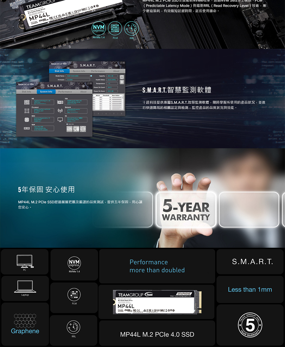 [TEAM 十銓]《GROUP MP44L 500GB PCIe Gen4 M.2》讀5000M/寫3700M/五年保(TM8FPV001T0C129)