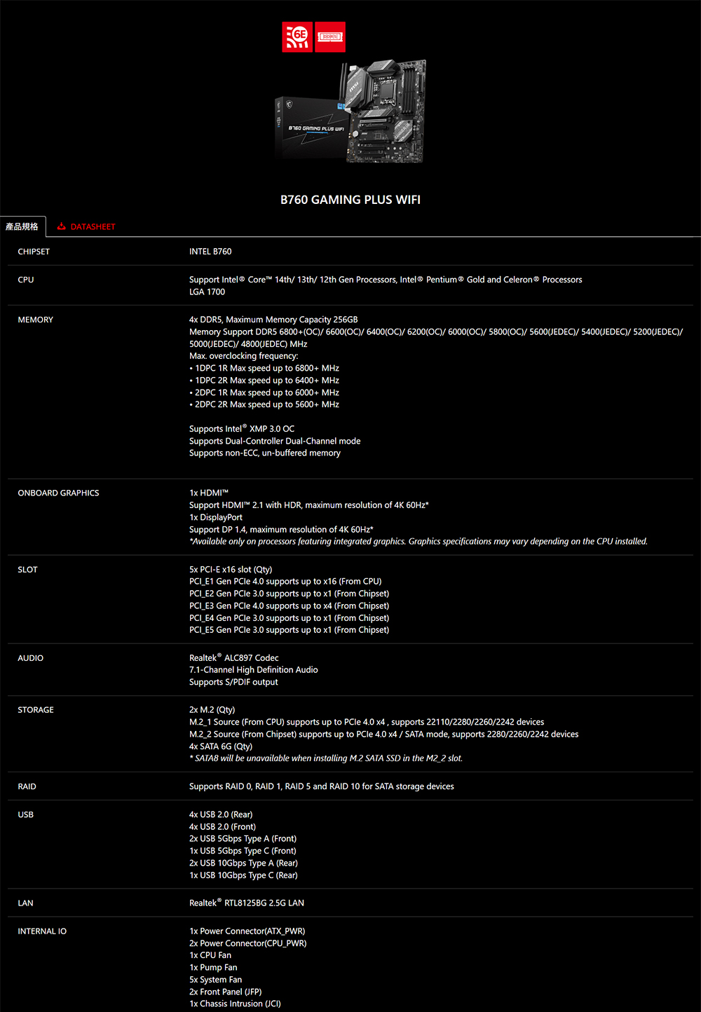 [MSI 微星]《B760 GAMING PLUS WIFI》ATX/LAN 2.5Gb+無線/註五年