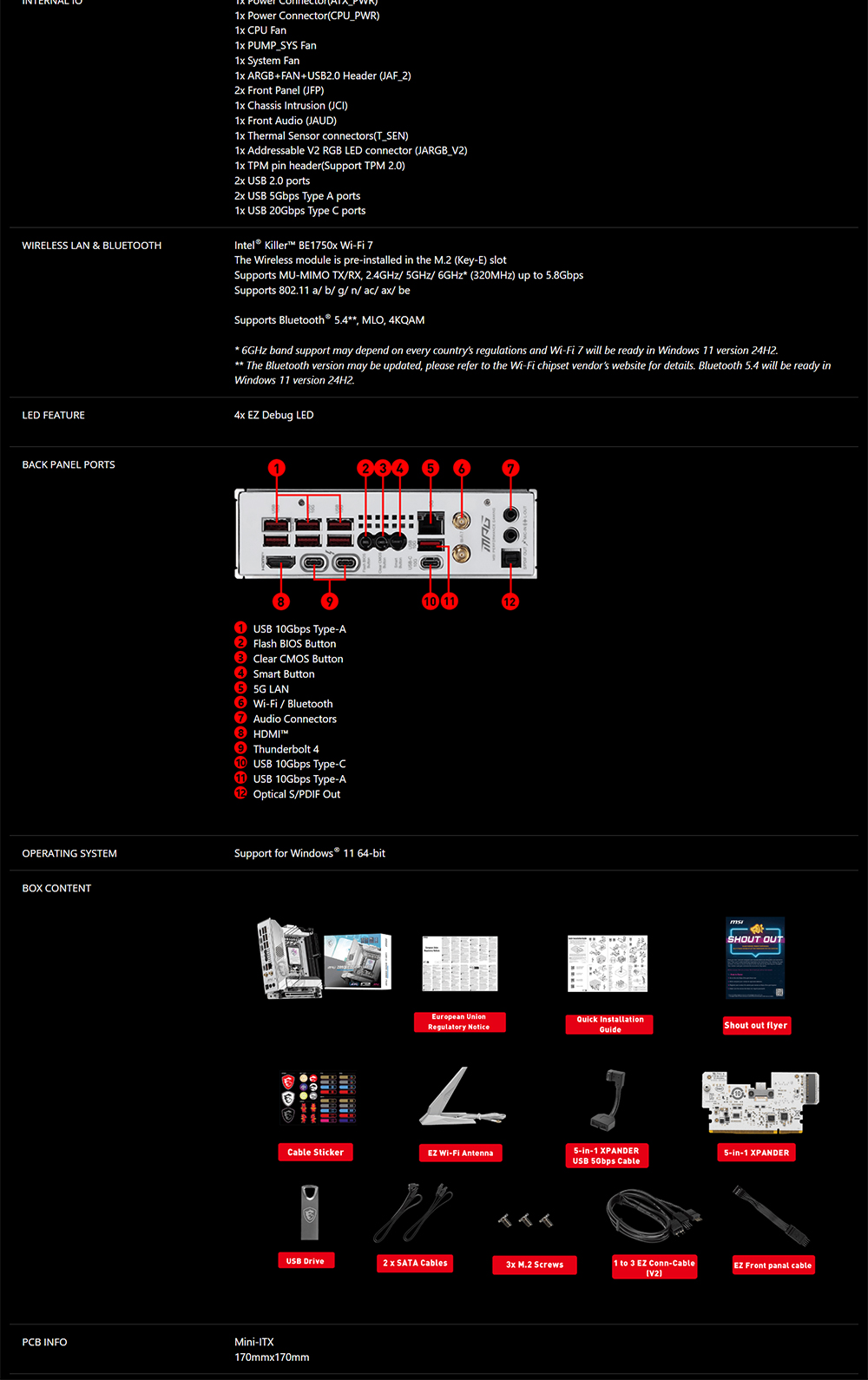 [MSI 微星]《MPG Z890I EDGE TI WIFI》Mini-ITX/Killer 5Gb+Wi-Fi 7/註冊五年