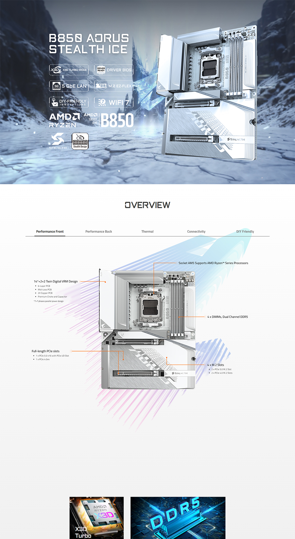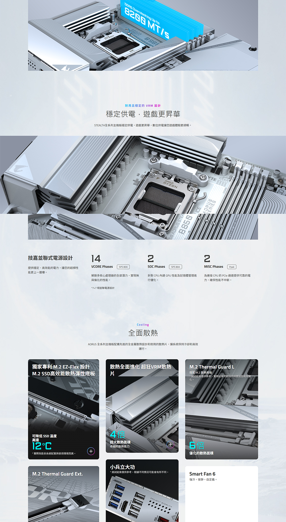 [GIGABYTE 技嘉]《B850 AORUS STEALTH ICE背插式》ATX/LAN 5G+Wi-Fi 7/註5年