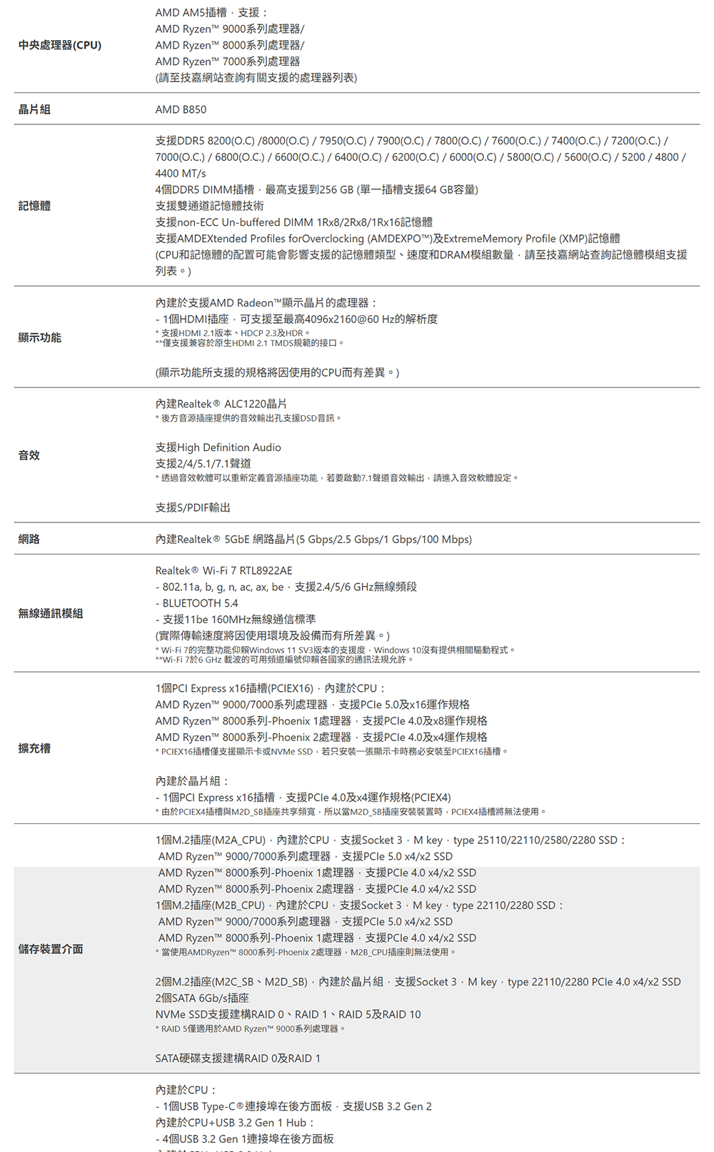 雙通道DDR5 : 4組記憶體插槽,支援AMD EXPO™ 記憶體模組