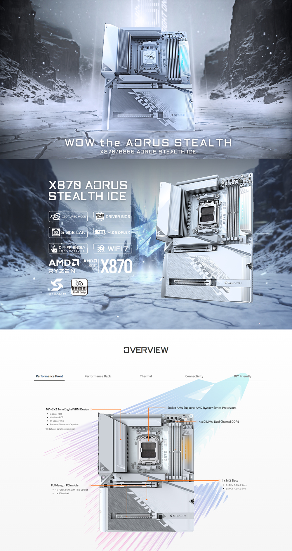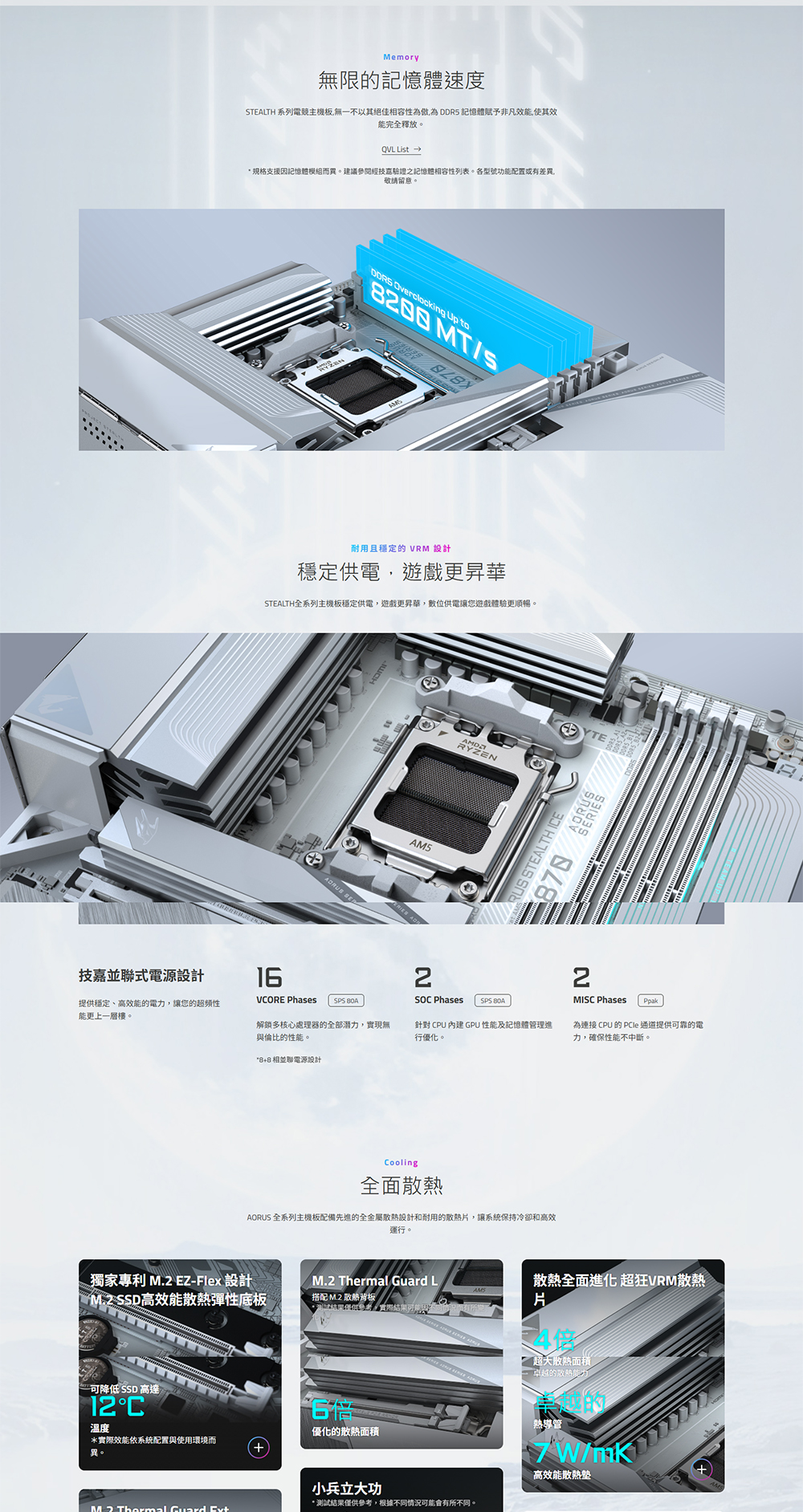 [GIGABYTE 技嘉]《X870 AORUS STEALTH ICE背插式》ATX/LAN 5G+Wi-Fi 7/註5年