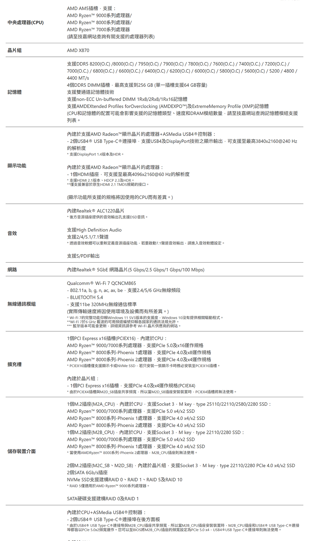 雙通道DDR5 : 4組記憶體插槽,支援AMD EXPO™ 記憶體模組