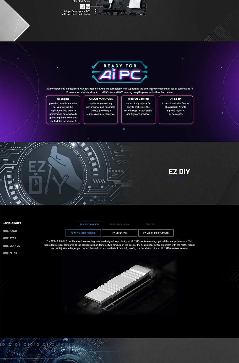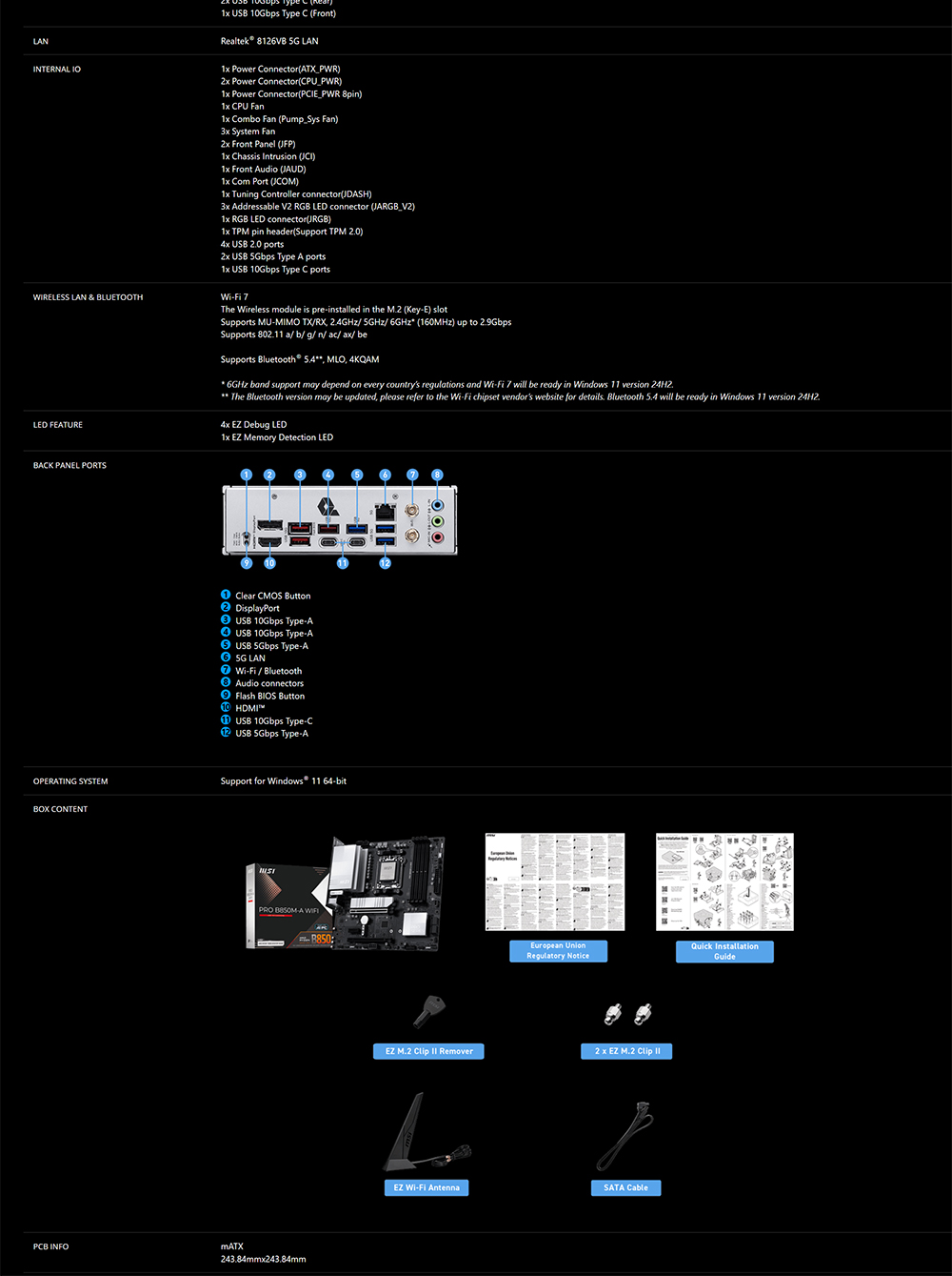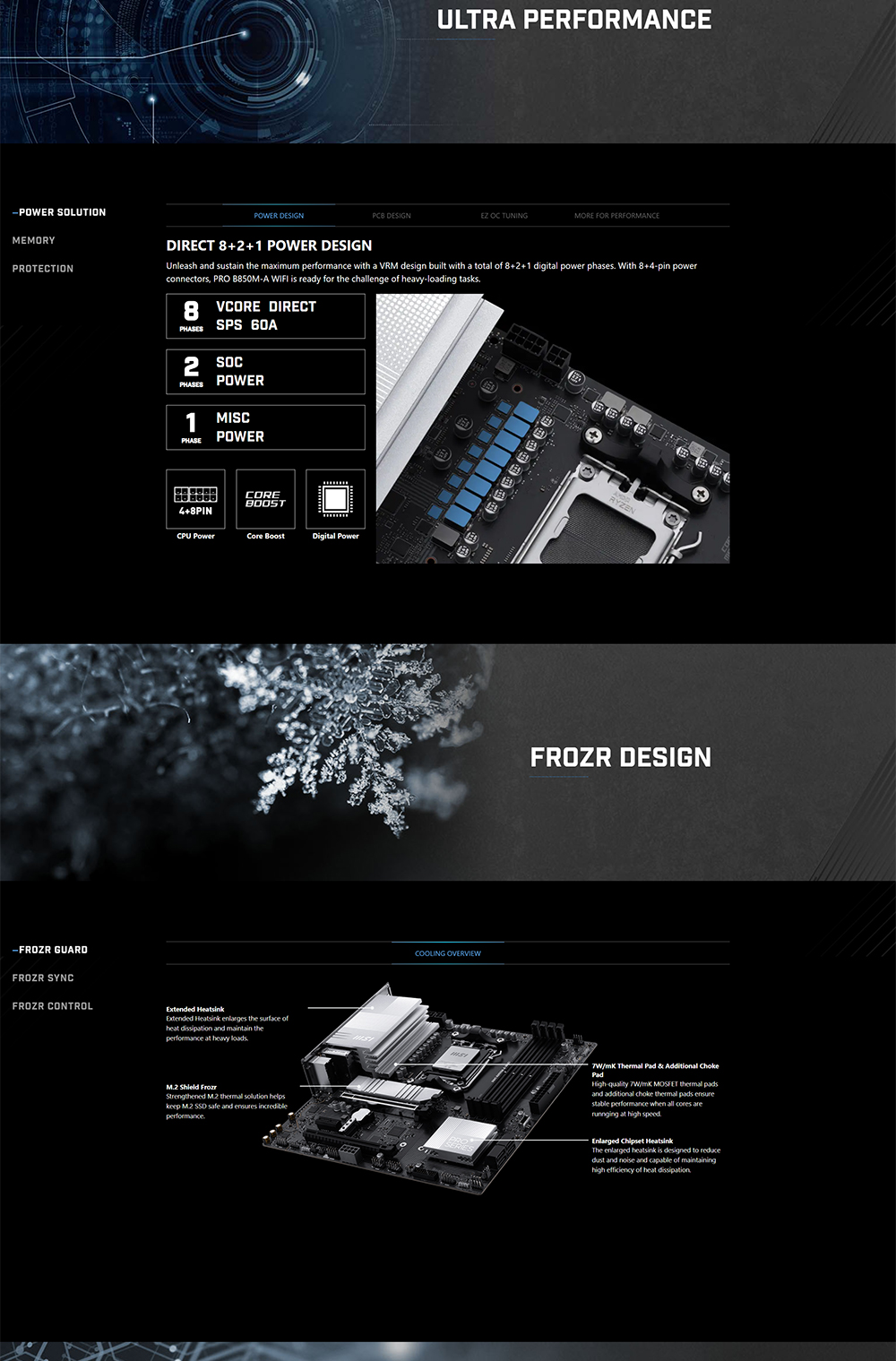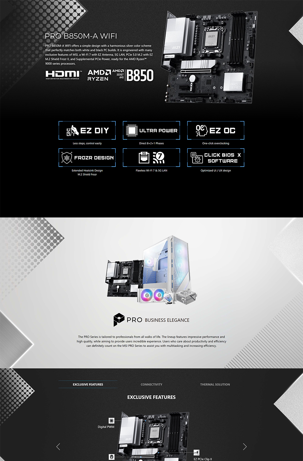 PRO B850M-A WIFI offers a simple design with a harmonious silver color scheme that perfectly matches both white and black PC builds. It is engineered with many exclusive features of MSI