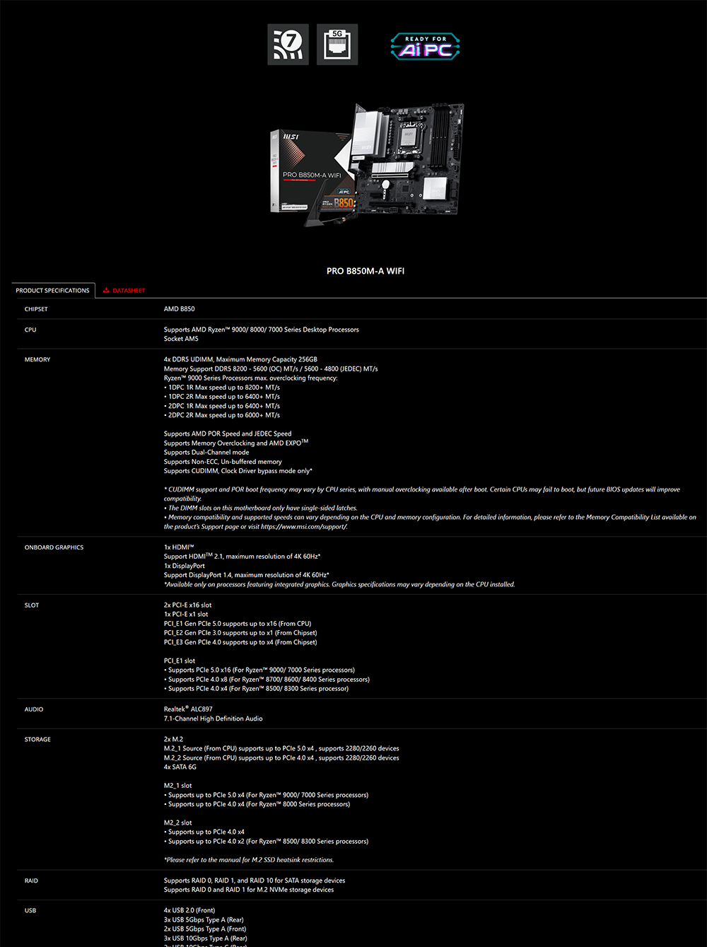 [MSI 微星]《PRO-B850M-A-WIFI》M-ATX/LAN 5G+Wi-Fi 7/註四年