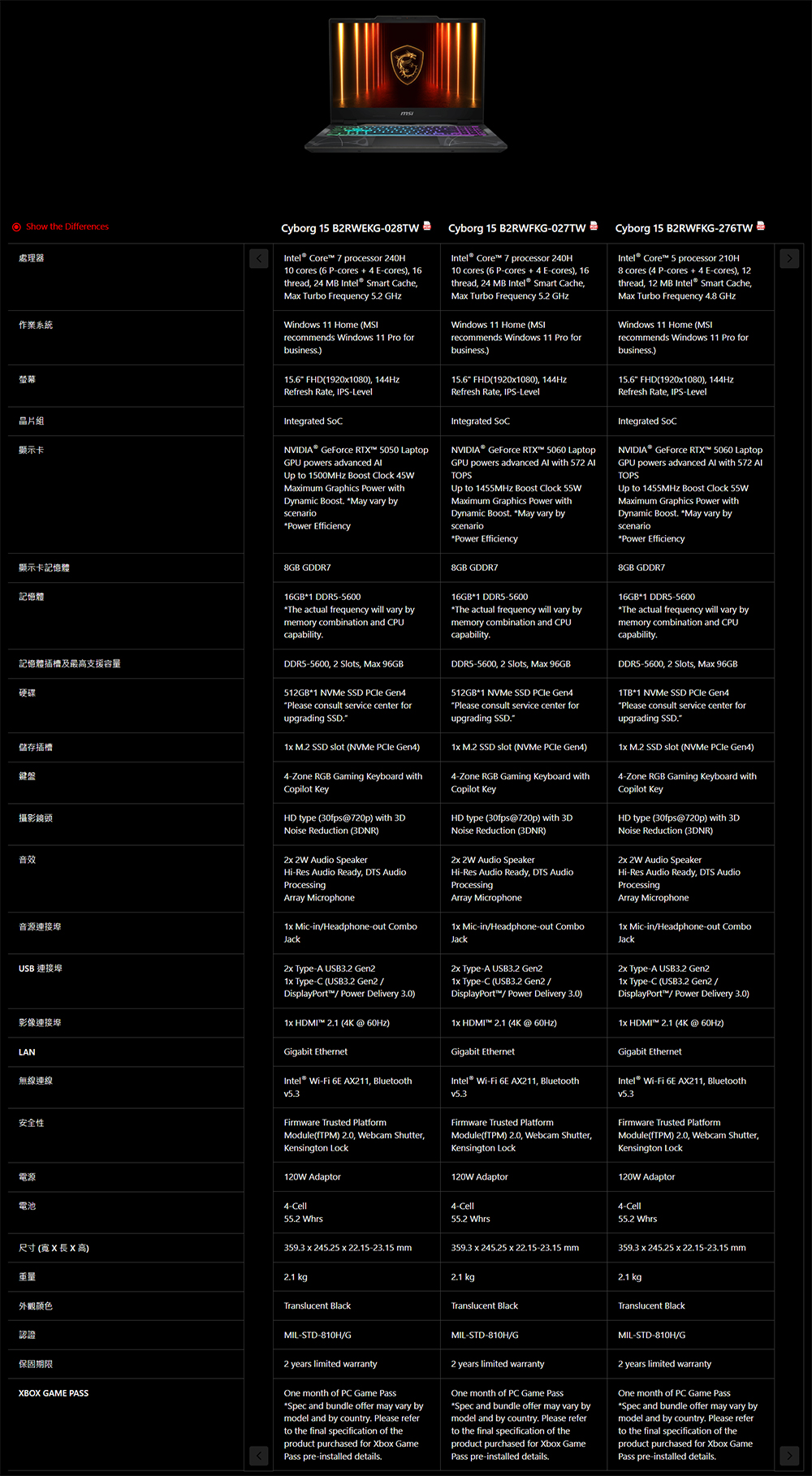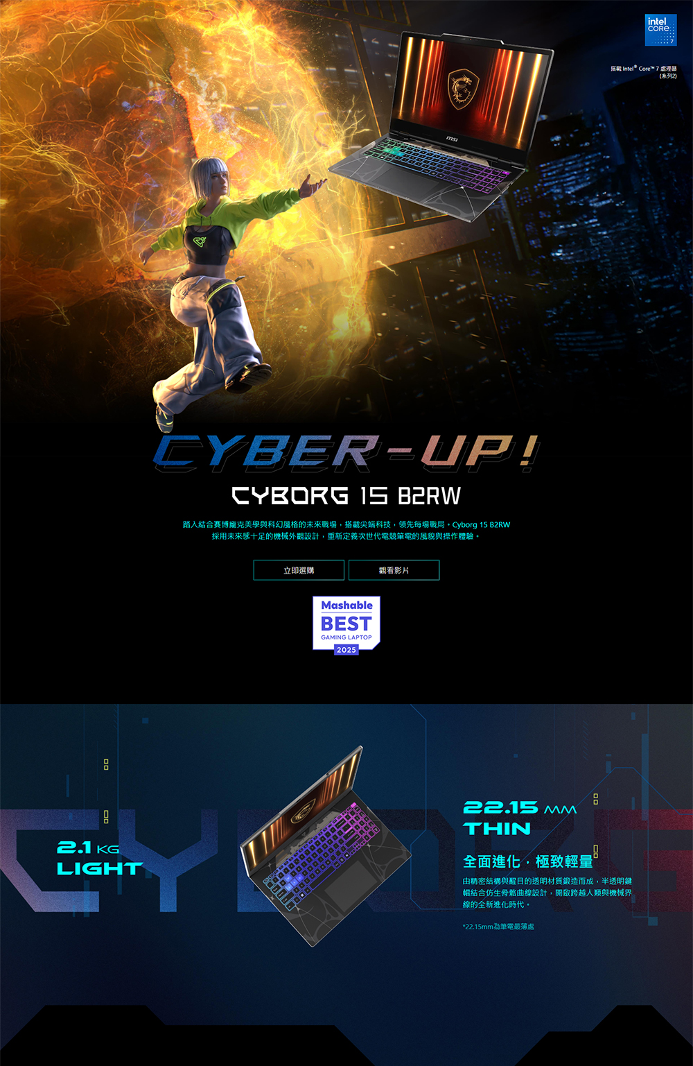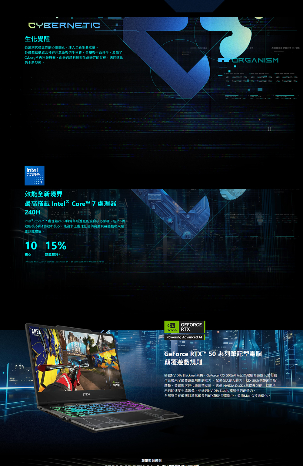 [MSI 微星]《Cyborg 15 B2RWFKG-027TW》15.6吋FHD/144Hz/Core 7-240H/16G D5/512G PCIe/RTX5060 8G/Win11