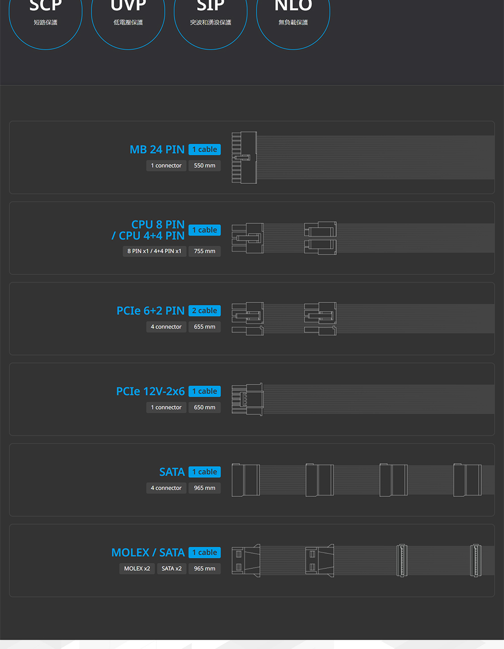全面性保護機制 OVP, OCP, OPP, OTP, SCP, UVP, SIP, NLO