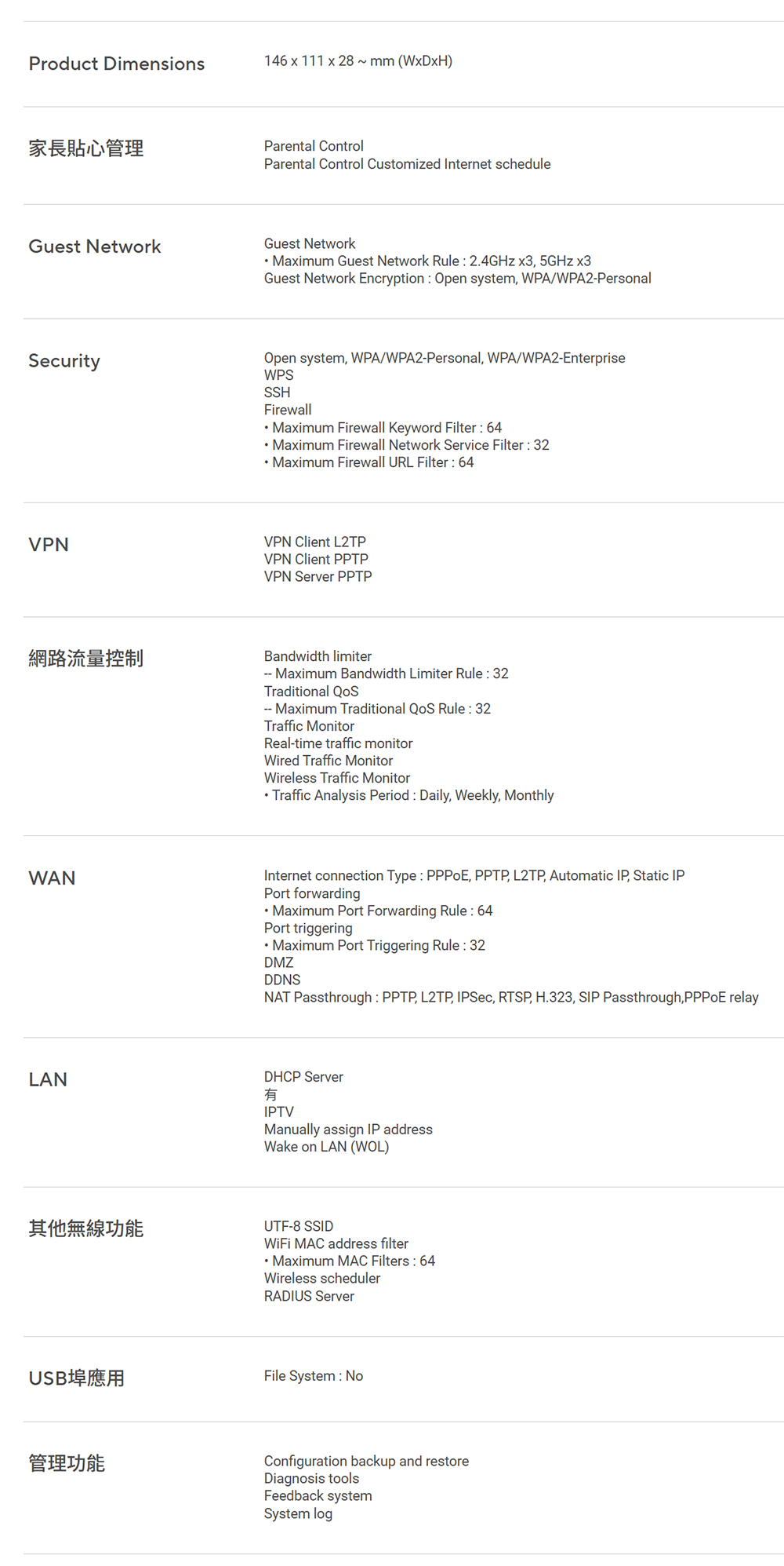 4組 SSID 協助管理各裝置頻寬配置與 WIFI 存取控制