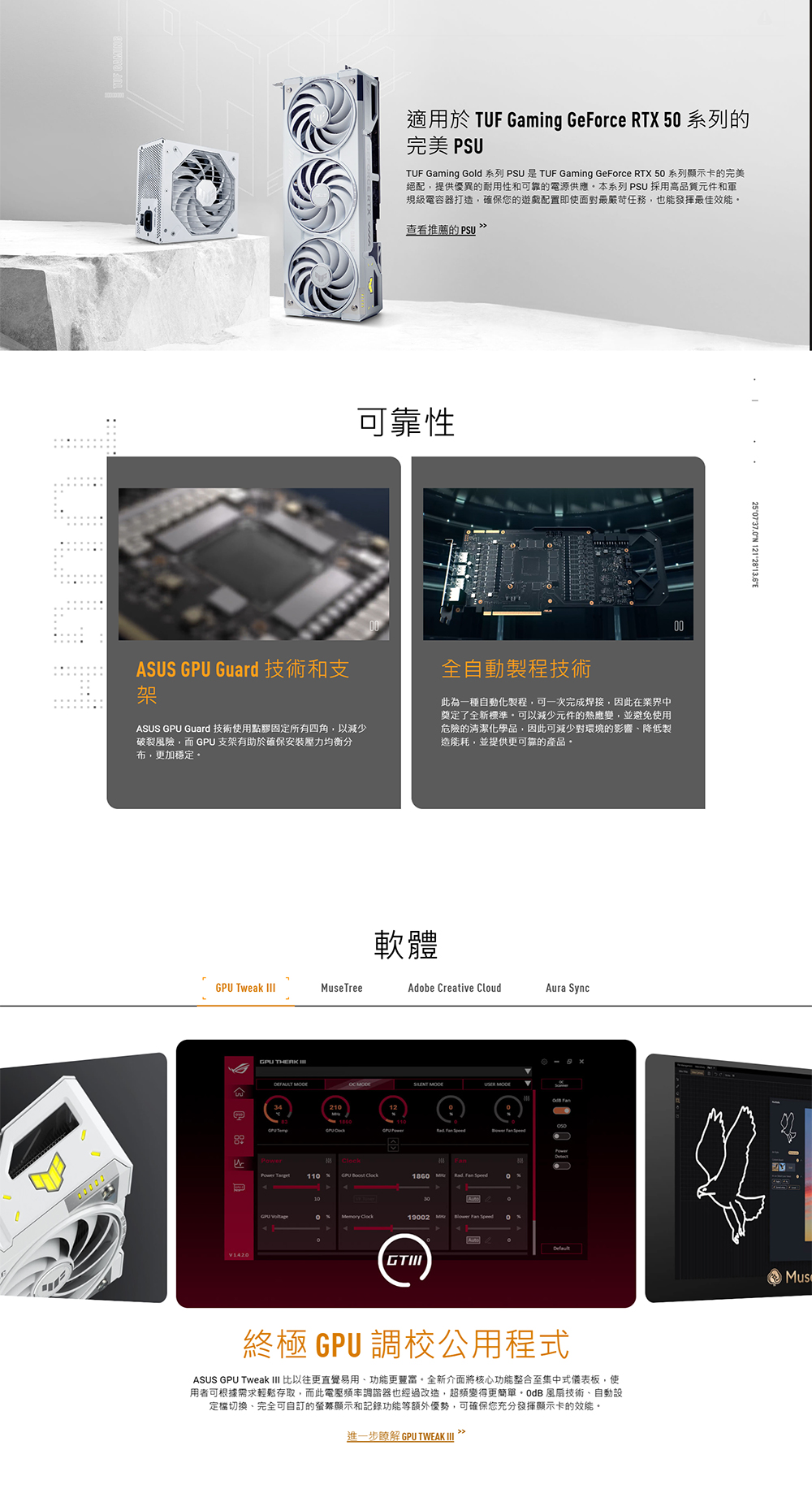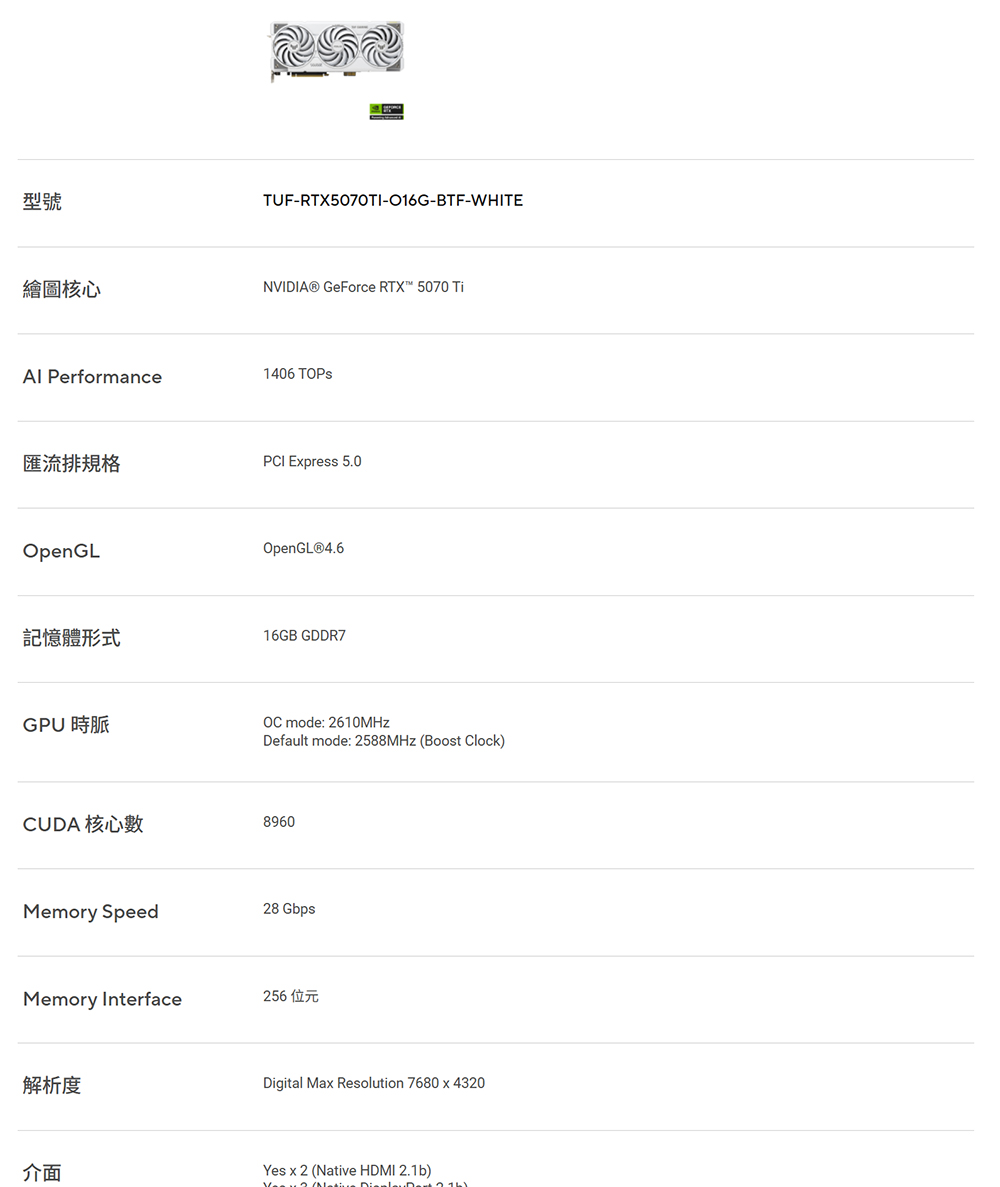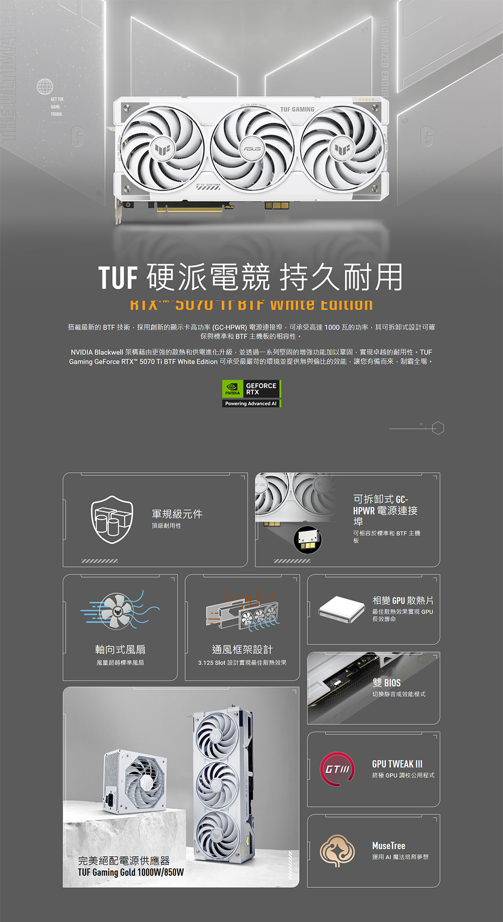 [ASUS 華碩]《TUF-RTX5070TI-O16G-BTF-WHITE 背插 白》2610MHz/33cm/三風扇/註四年保