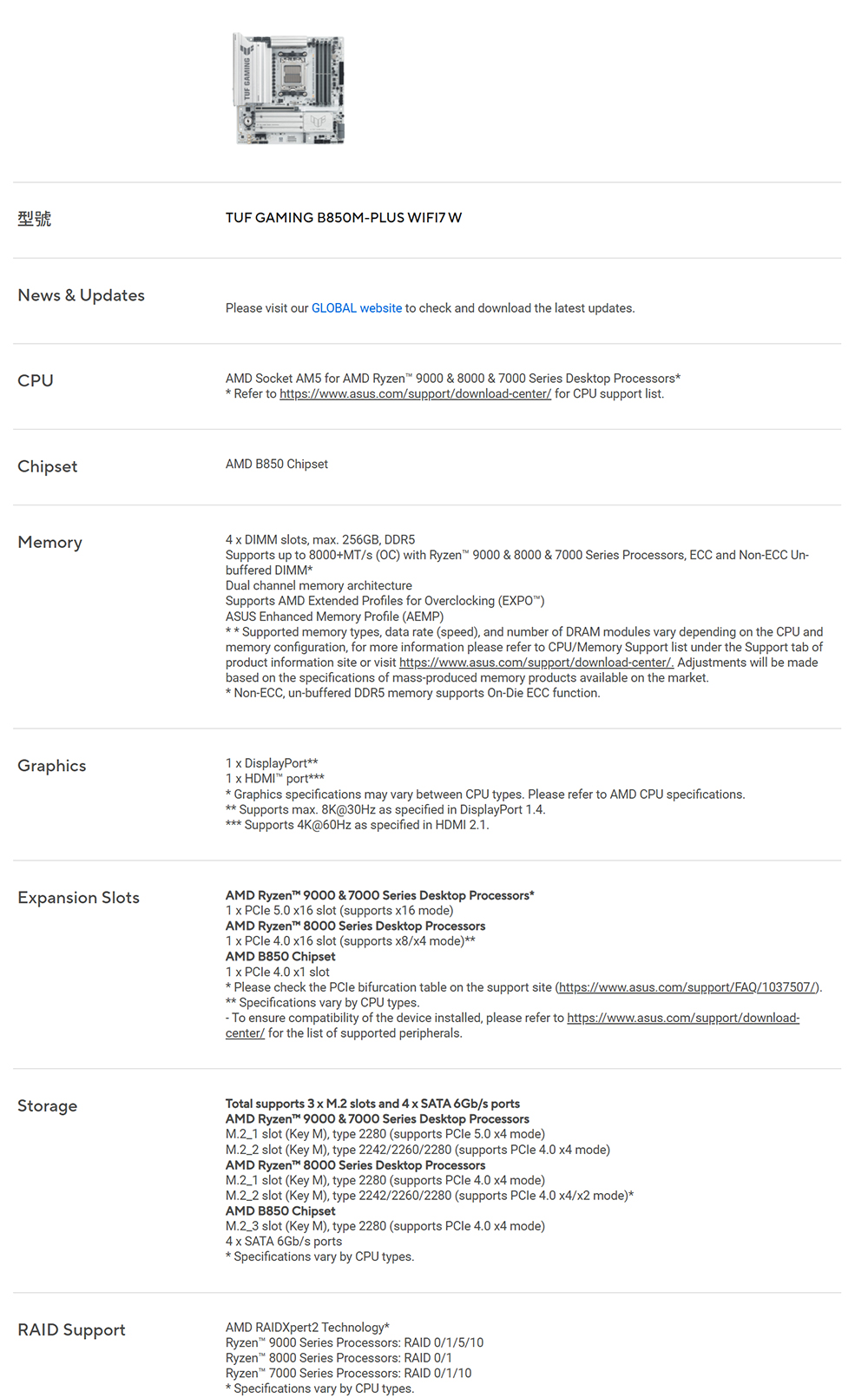 [ASUS華碩]《TUF-GAMING-B850M-PLUS WIFI7 W》白/M-ATX/LAN2.5G+Wi-Fi 7/註五年