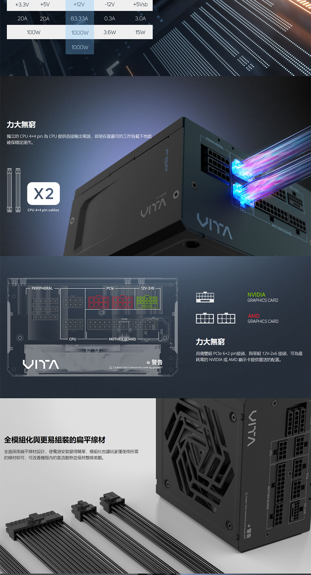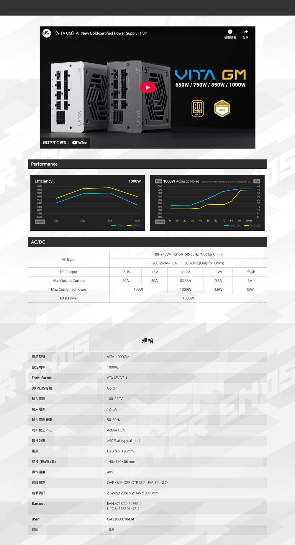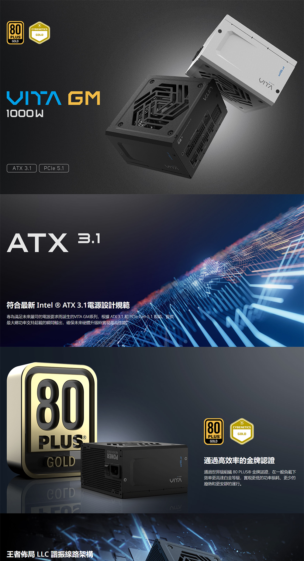[FSP全漢]《VITA GM 1000W》(MIT) 雙8/金牌/全模/ATX3.1(PCIe 5.1)/主日系/10年保
