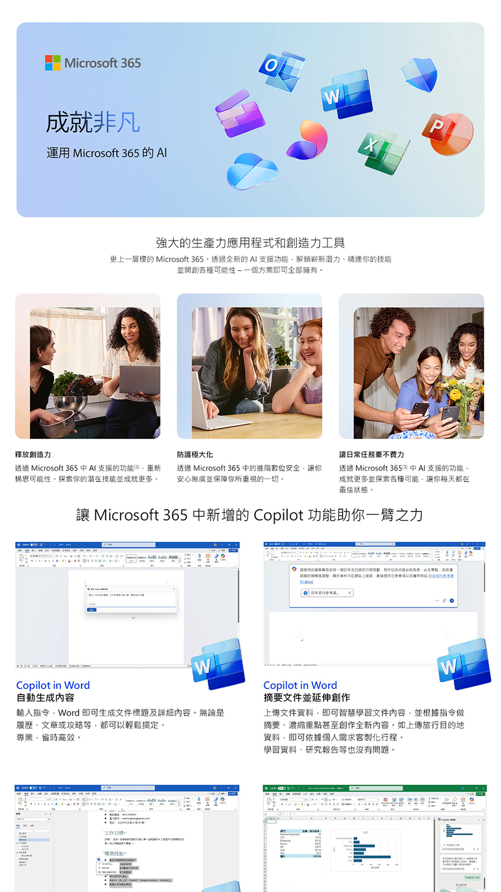 透過Microsoft 365 中的AI支援的功能,重新構思可能性,成就更多並探索各種可能。