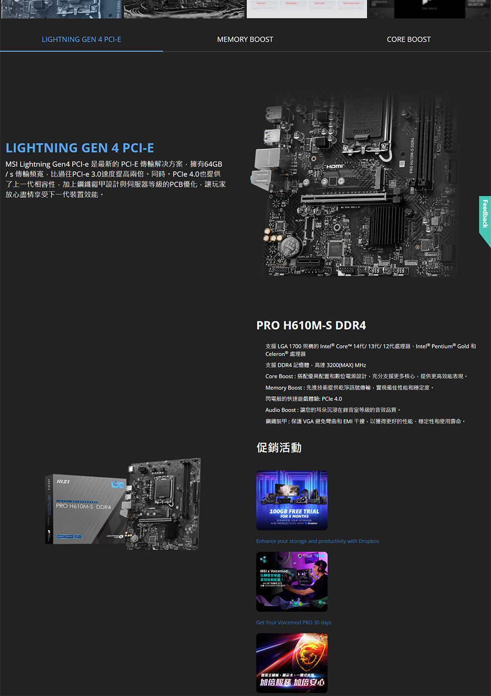 [MSI 微星]《PRO H610M-S DDR4》(M-ATX/1H/Realtek 1Gb/註四年/2DIMM) 5相