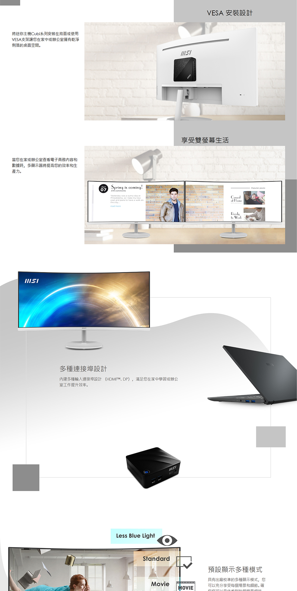 PRO MP341C 系列讓您以最沉浸式的體驗,享受在自由生活中。無論是在觀看演講、數據資料或是程式編碼撰寫、財經專業人士或YouTubers,都能透過顯示器享受生活,幫助您揮灑創意和想像力,並與世界交流。