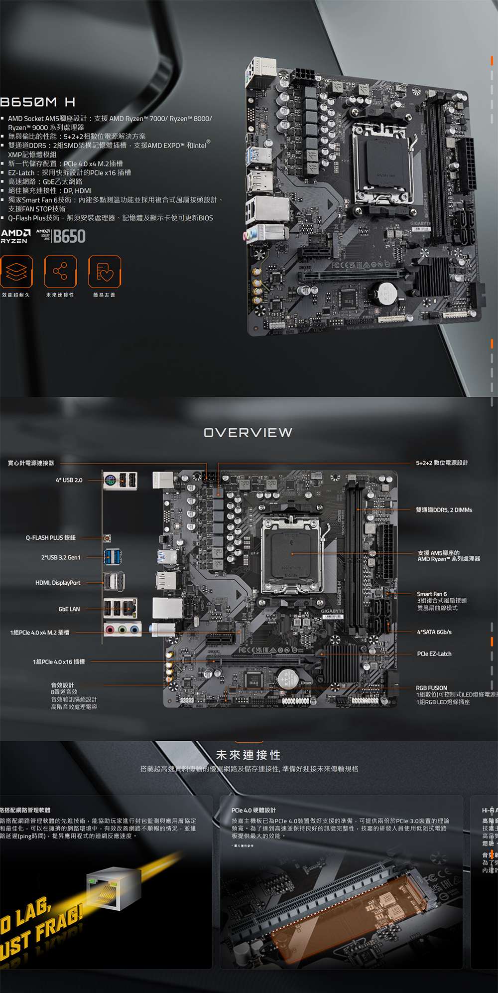 [GIGABYTE 技嘉]《B650M-H》M-ATX/Realtek LAN/註冊四年/2DIMM