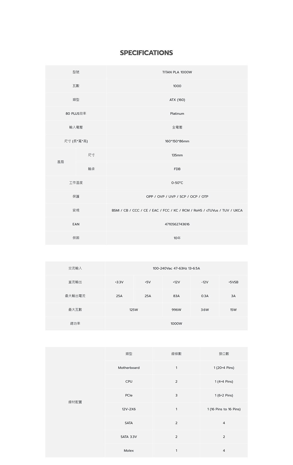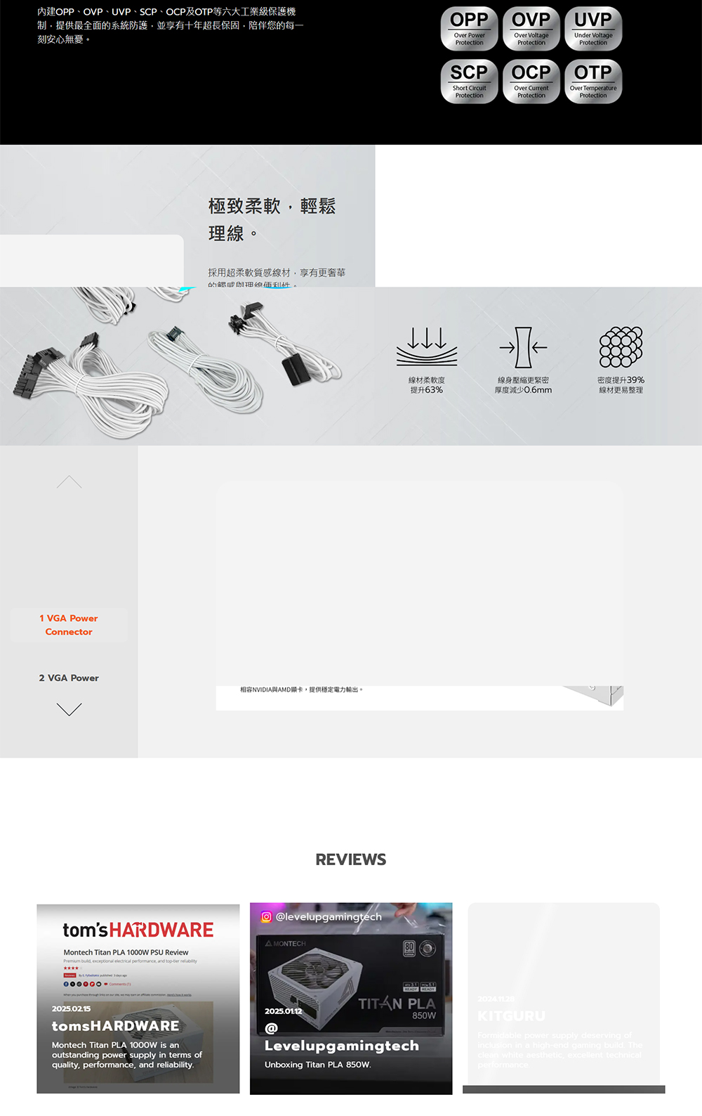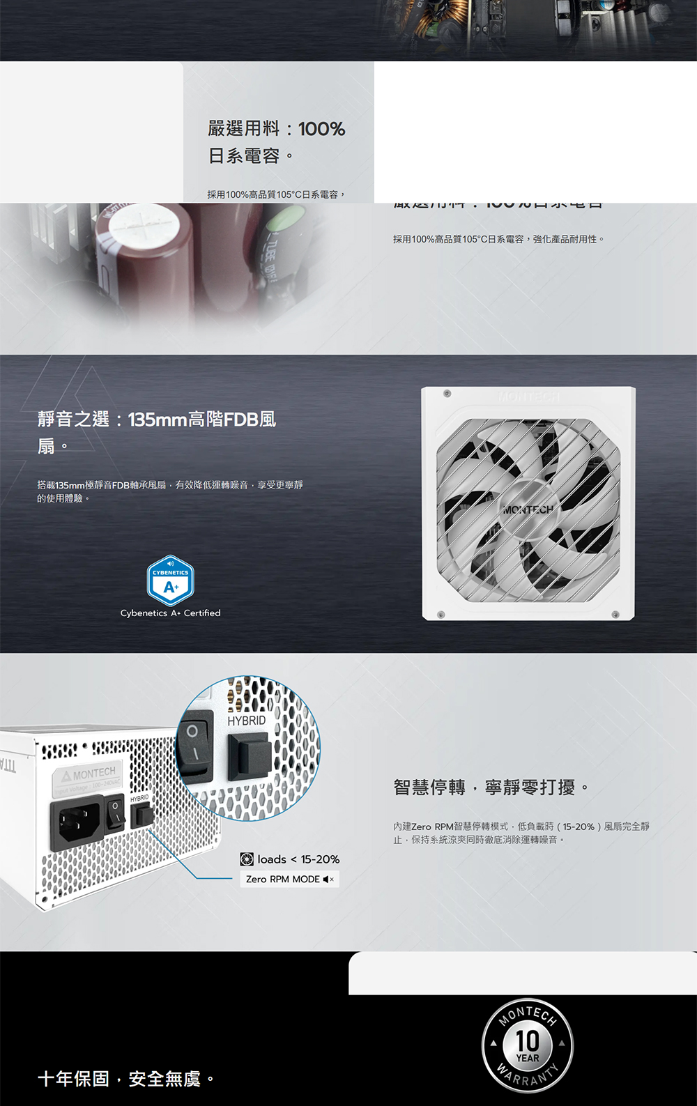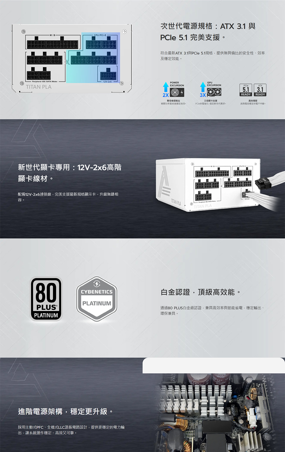 [MONTECH 君主]《TITAN PLA 1000W 白色》雙8/白金/全模/ATX3.1(PCIe 5.1)/智慧停轉/10年