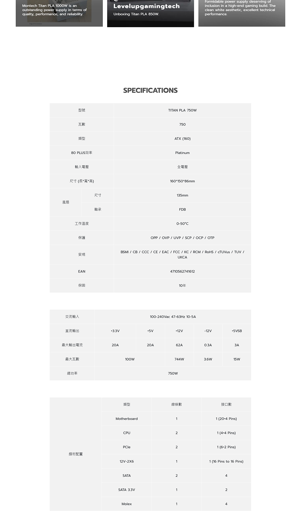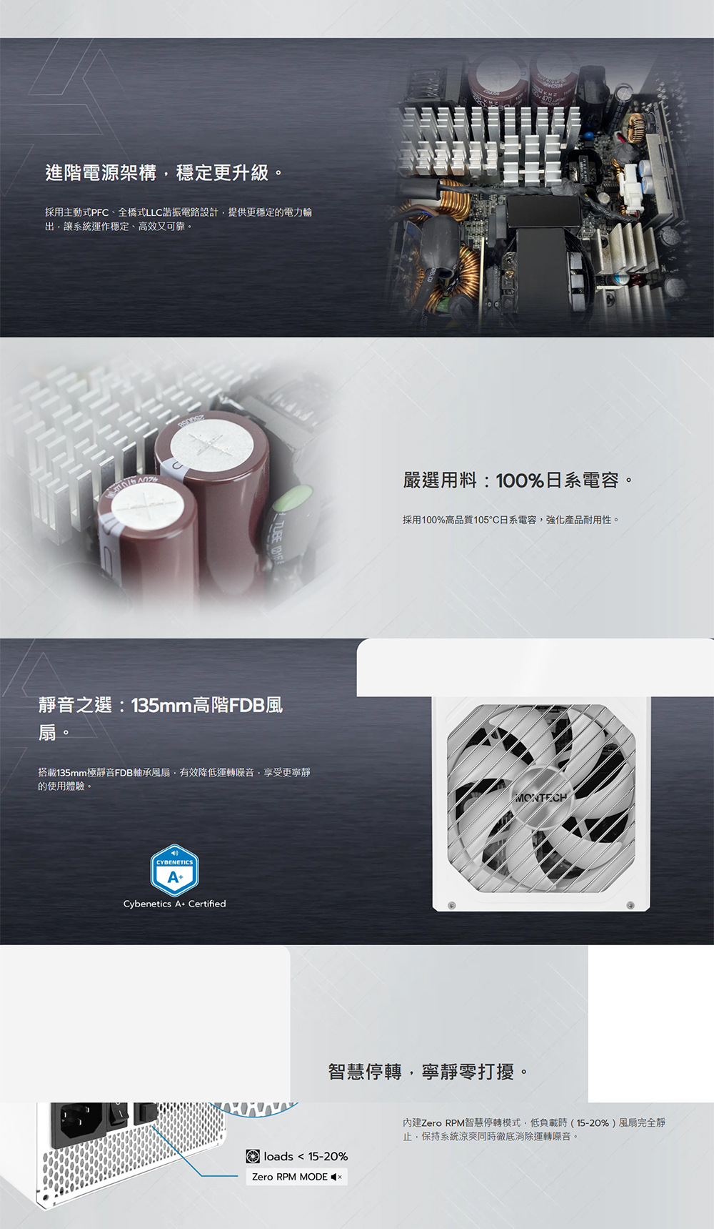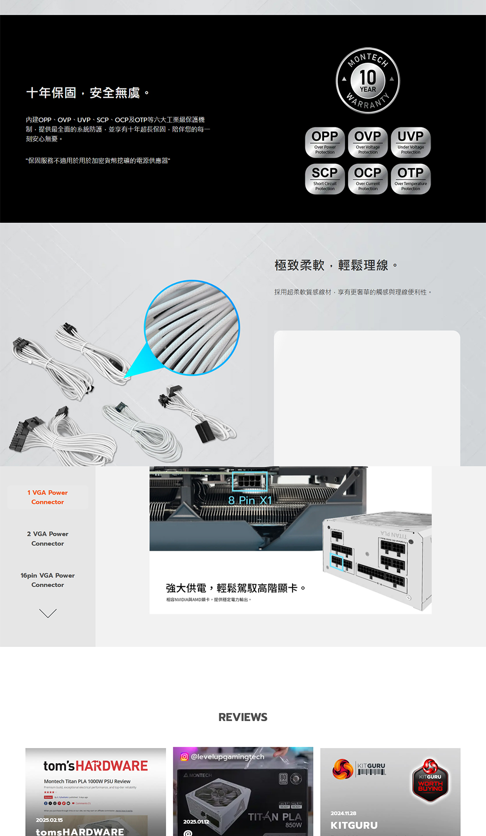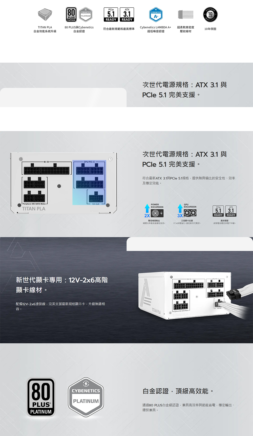 [MONTECH 君主]《TITAN PLA 750W 白色》雙8/白金/全模/ATX3.1(PCIe 5.1)/智慧停轉/10年