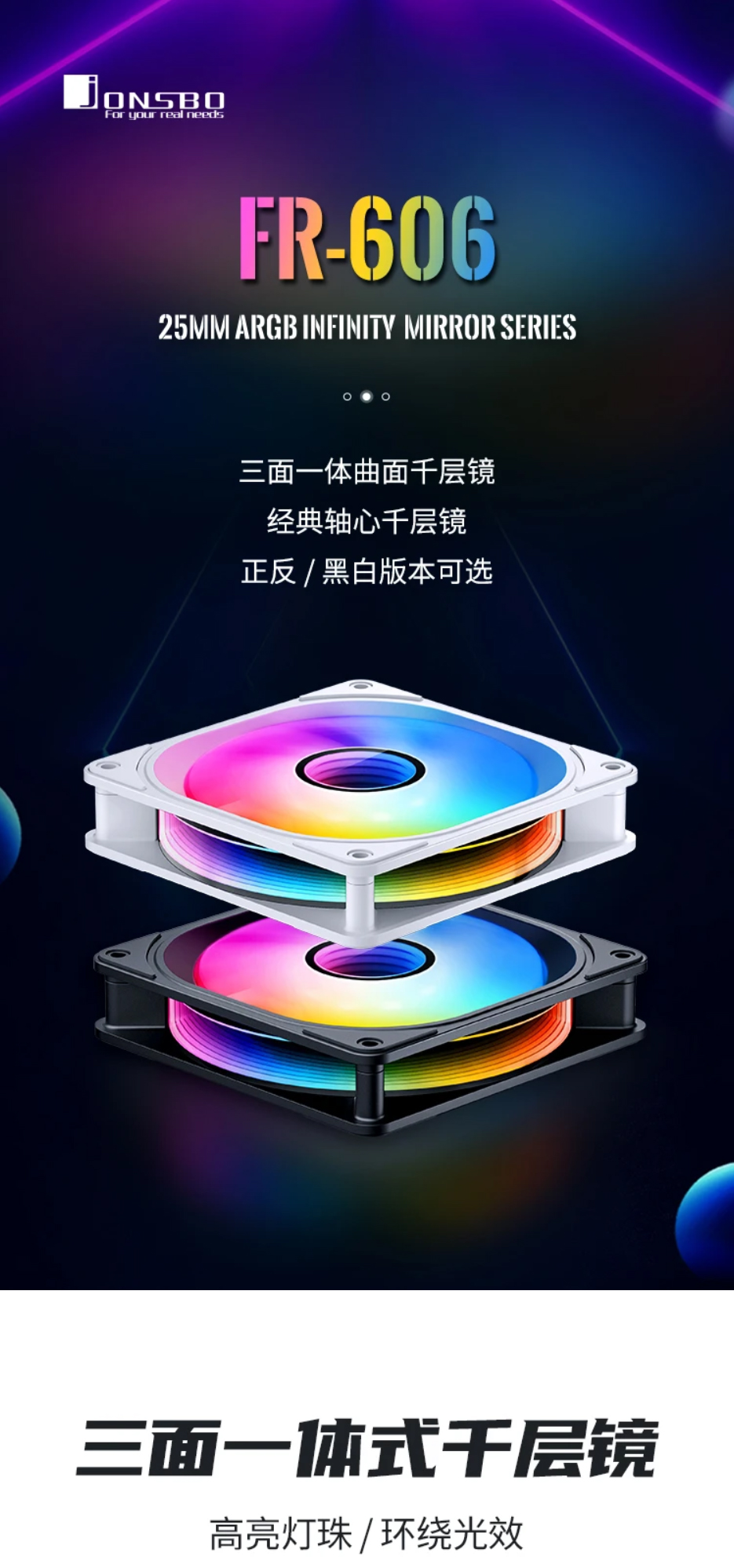 [Jonsbo 喬思伯]《FR606 5V ARGB 黑》PWM/ARGB燈效/圓幅式無限鏡/1500 RPM/3年保