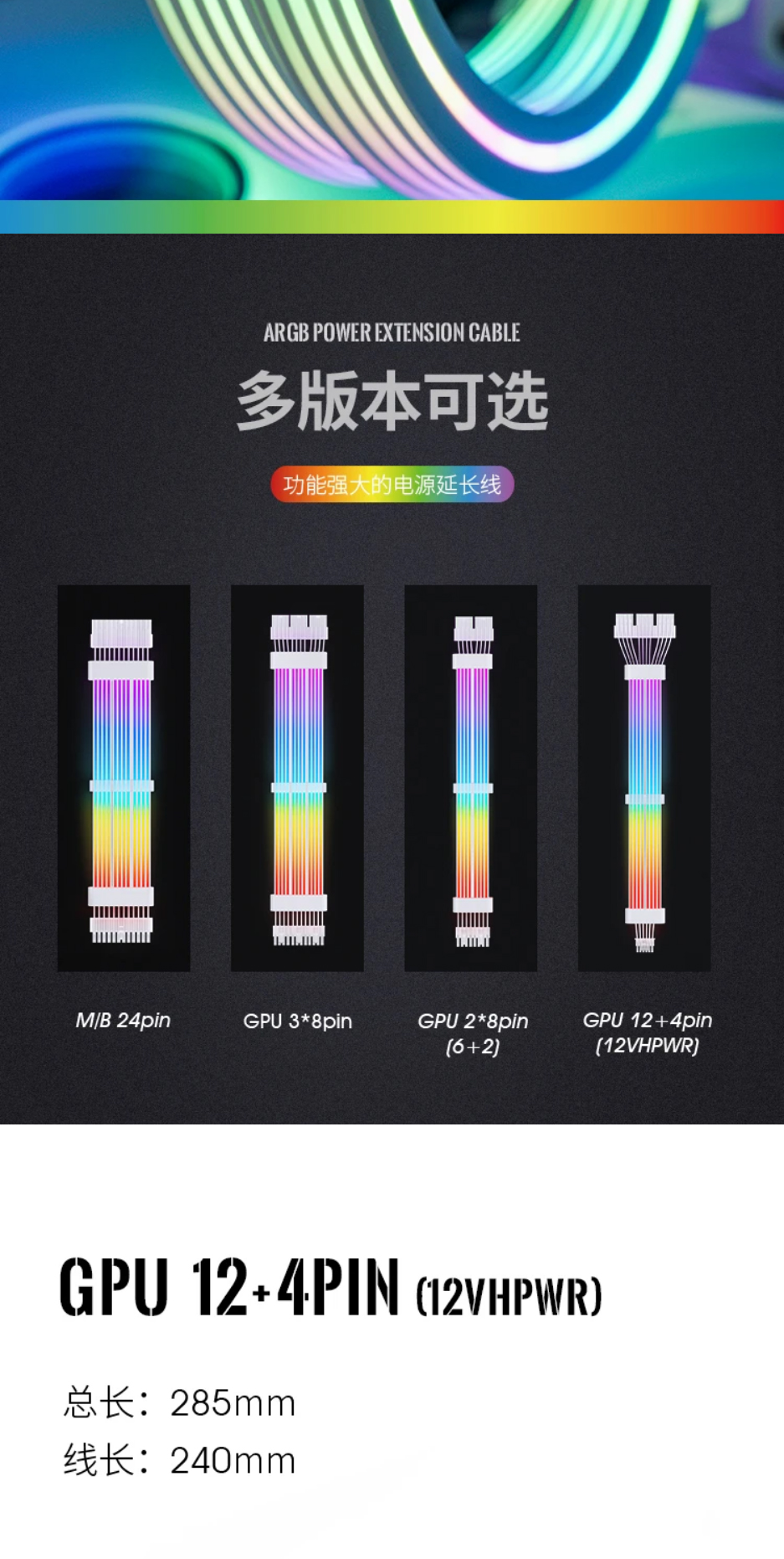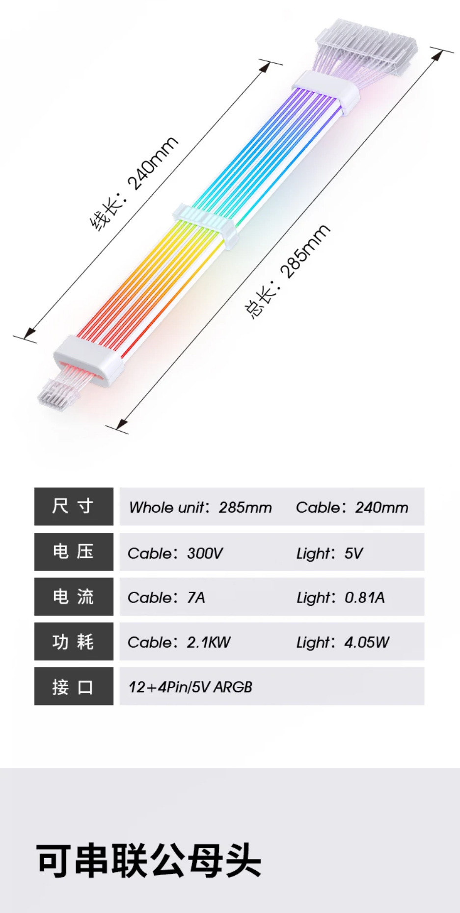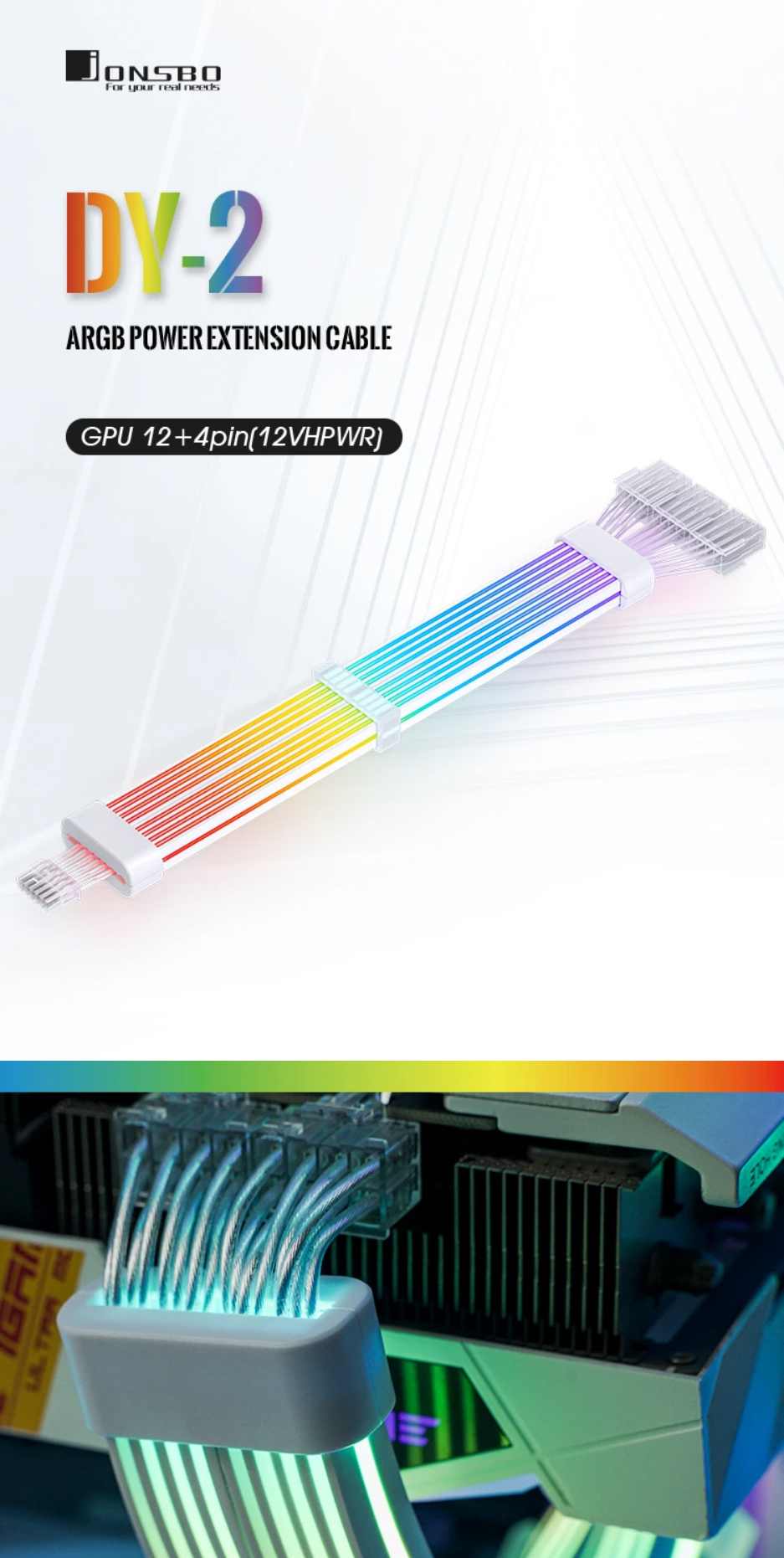 [JONSBO 喬思伯]《DY2 顯卡12+4pin (12VHPWR) 純白電源延長發光線 延長線》(JO-NZ-DY2-2)