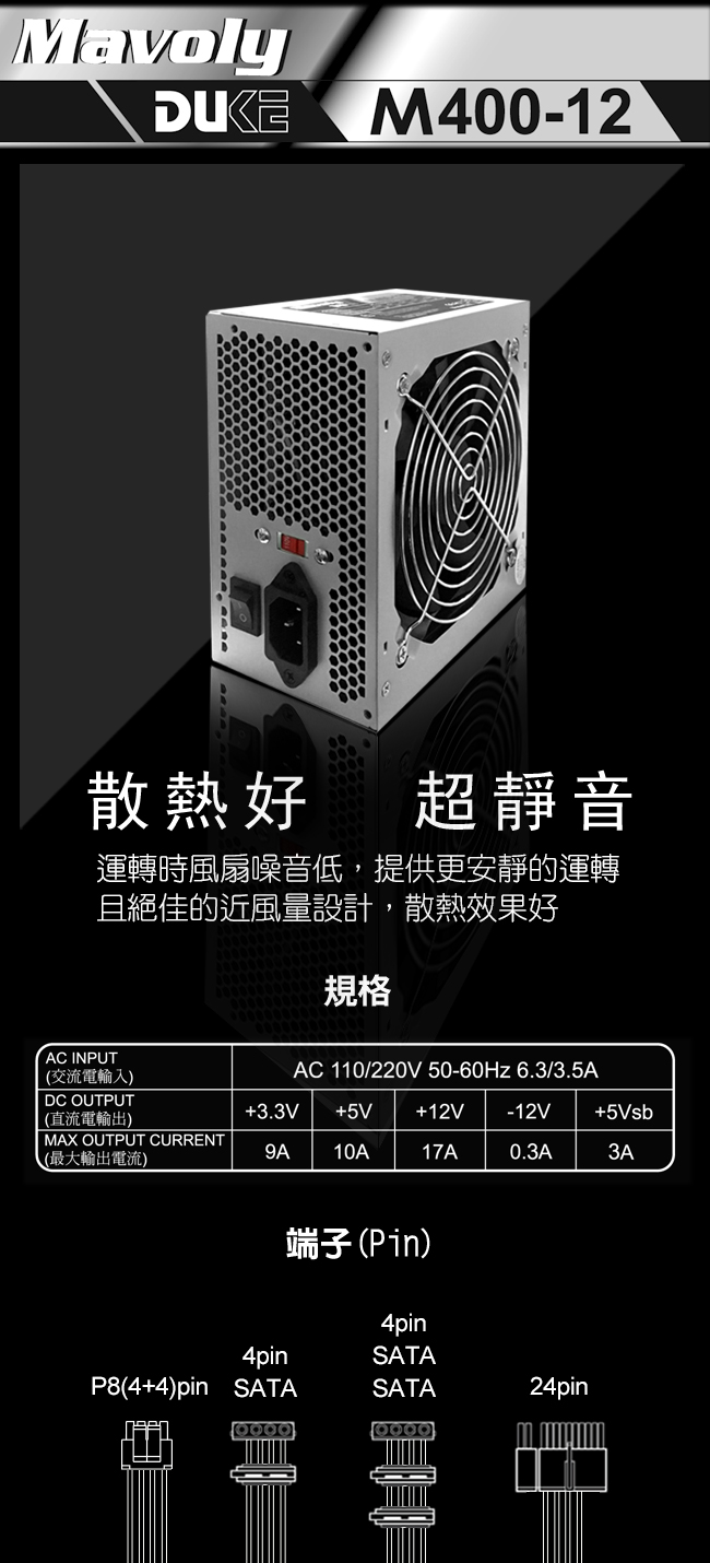 [Mavoly 松聖]《DUKE M400-12 400W 工業包》12cm風扇