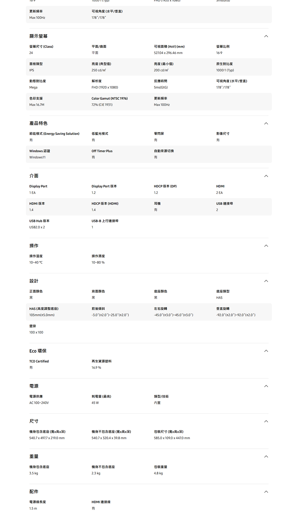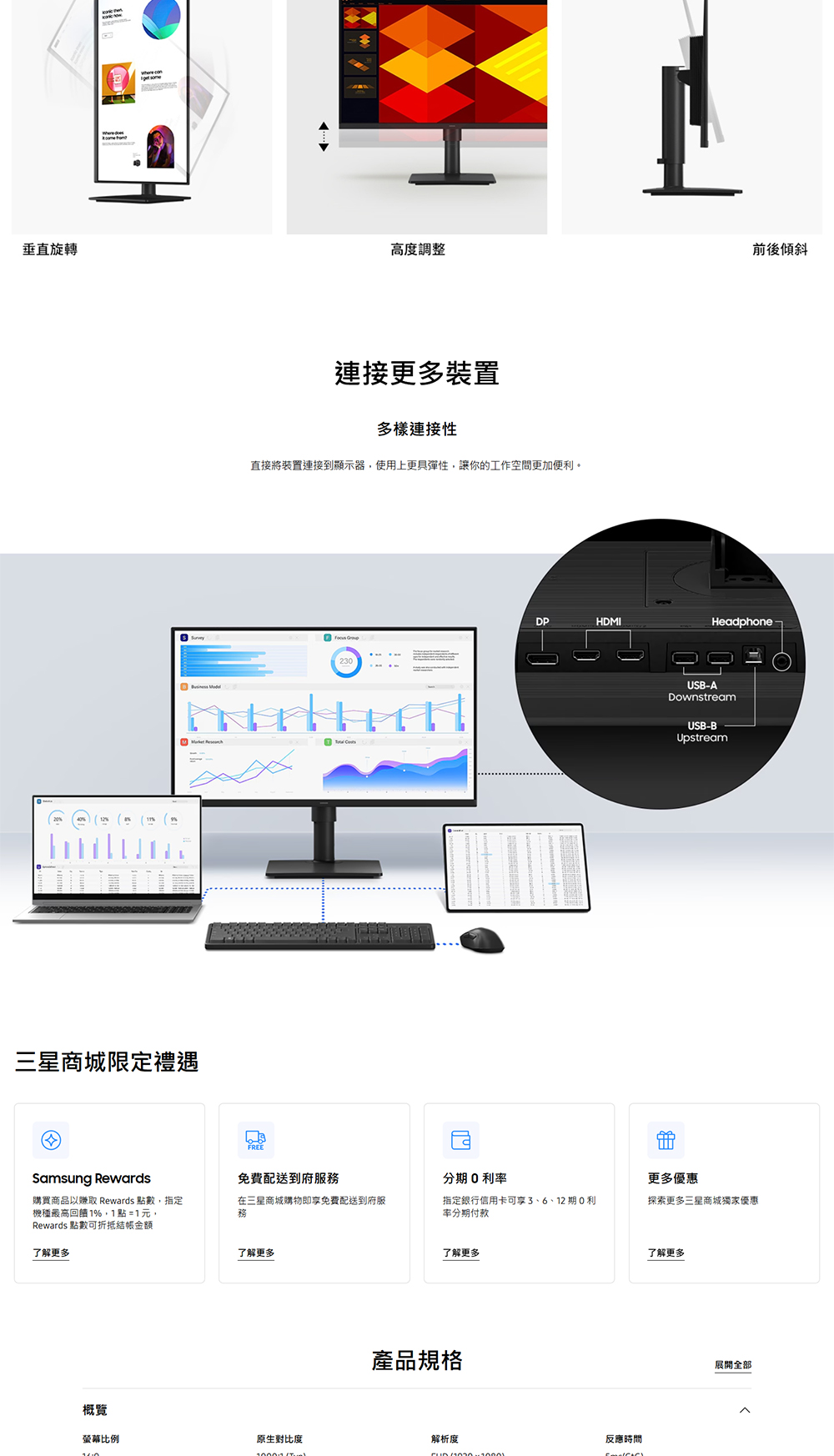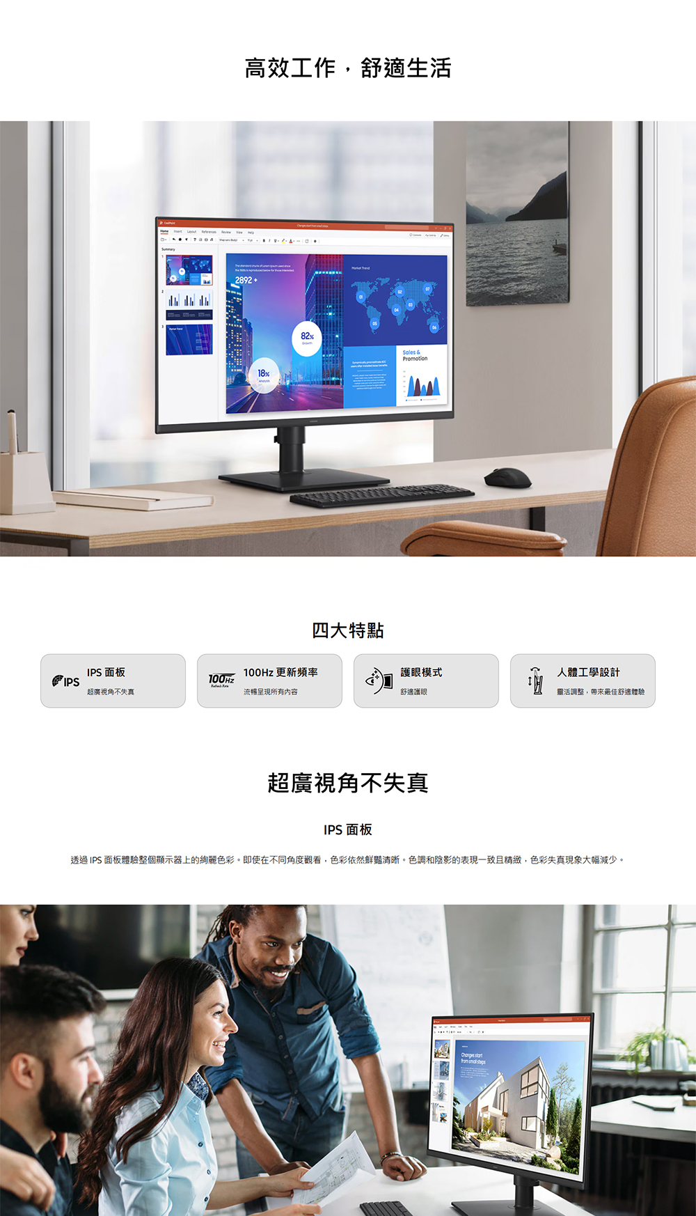 [Samsung三星]《S40GD S24D400GAC》IPS/5ms/100Hz/低藍光/不閃屏/DP/HDMI/USB/可升降/可旋轉/無喇叭/三年保