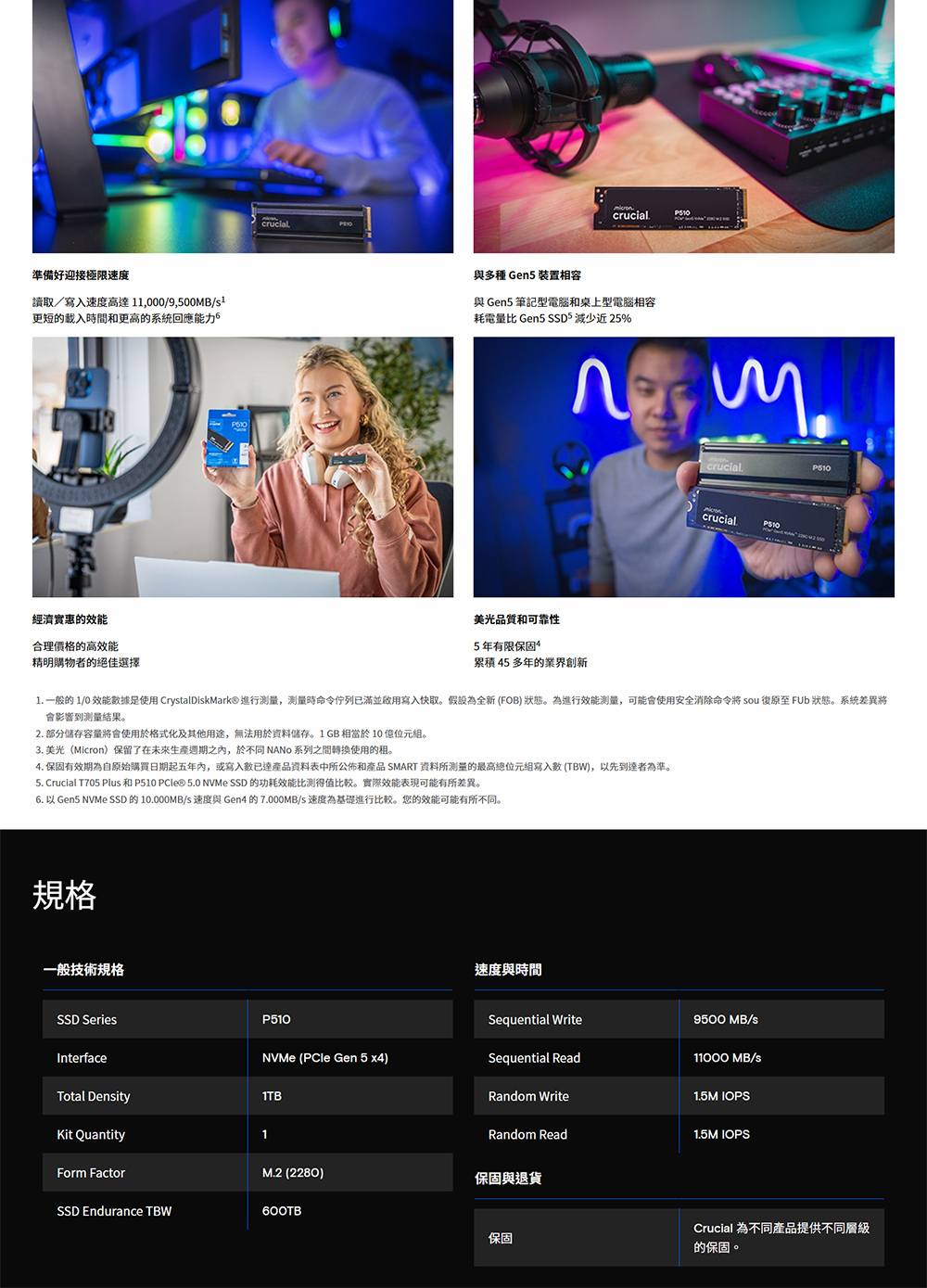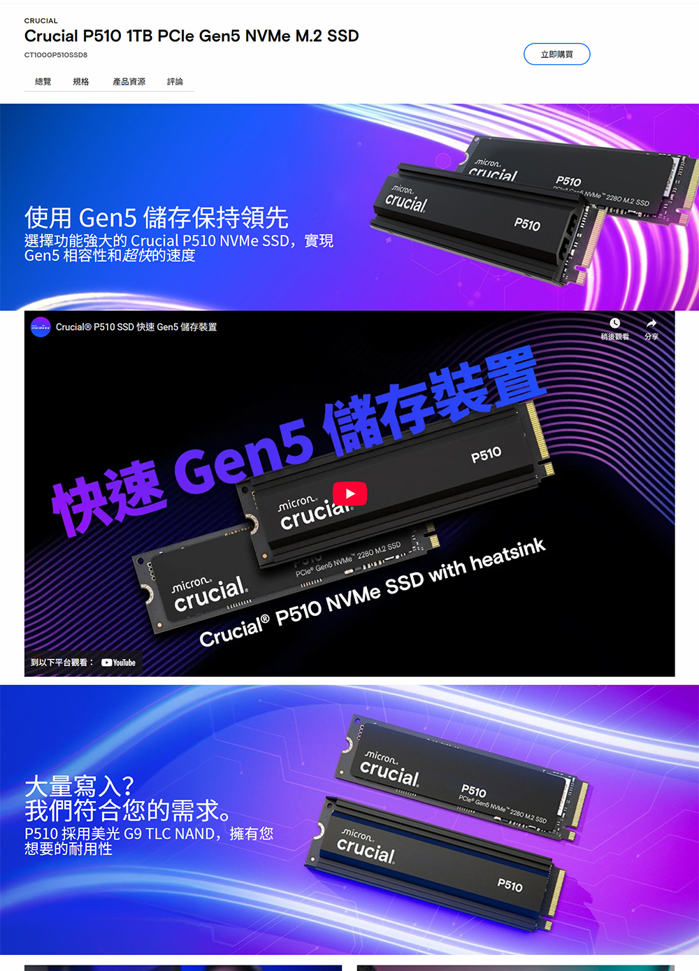 [Micron 美光]《P510 1TB PCIe Gen5 M.2》讀10000M/寫8700M/五年保(CT1000P510SSD8)