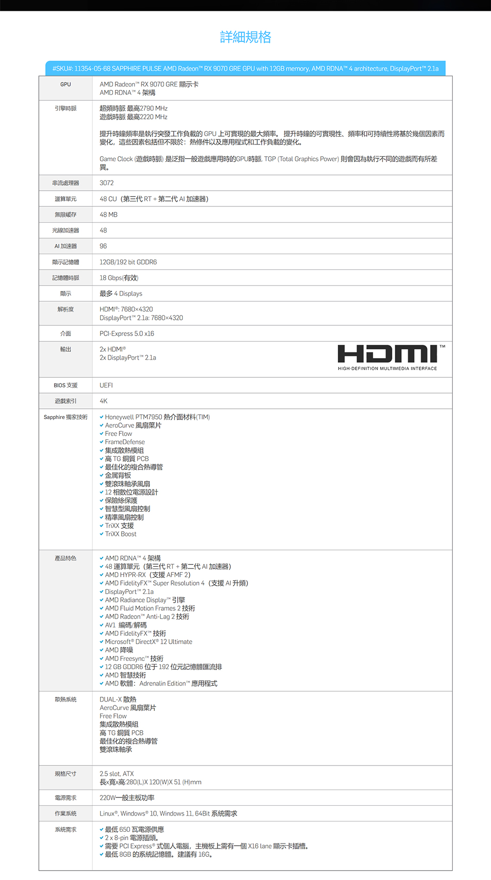 [Sapphire 藍寶]《PULSE 脈動 RX9070 GRE 12G D6》2790MHz/28cm/三風扇/三年保