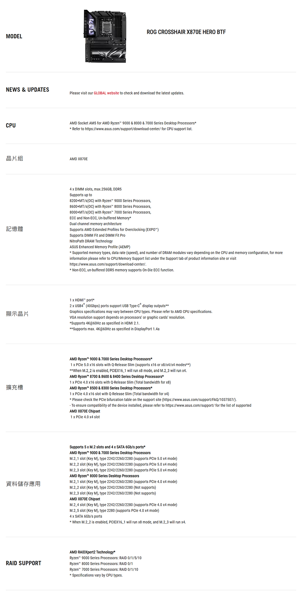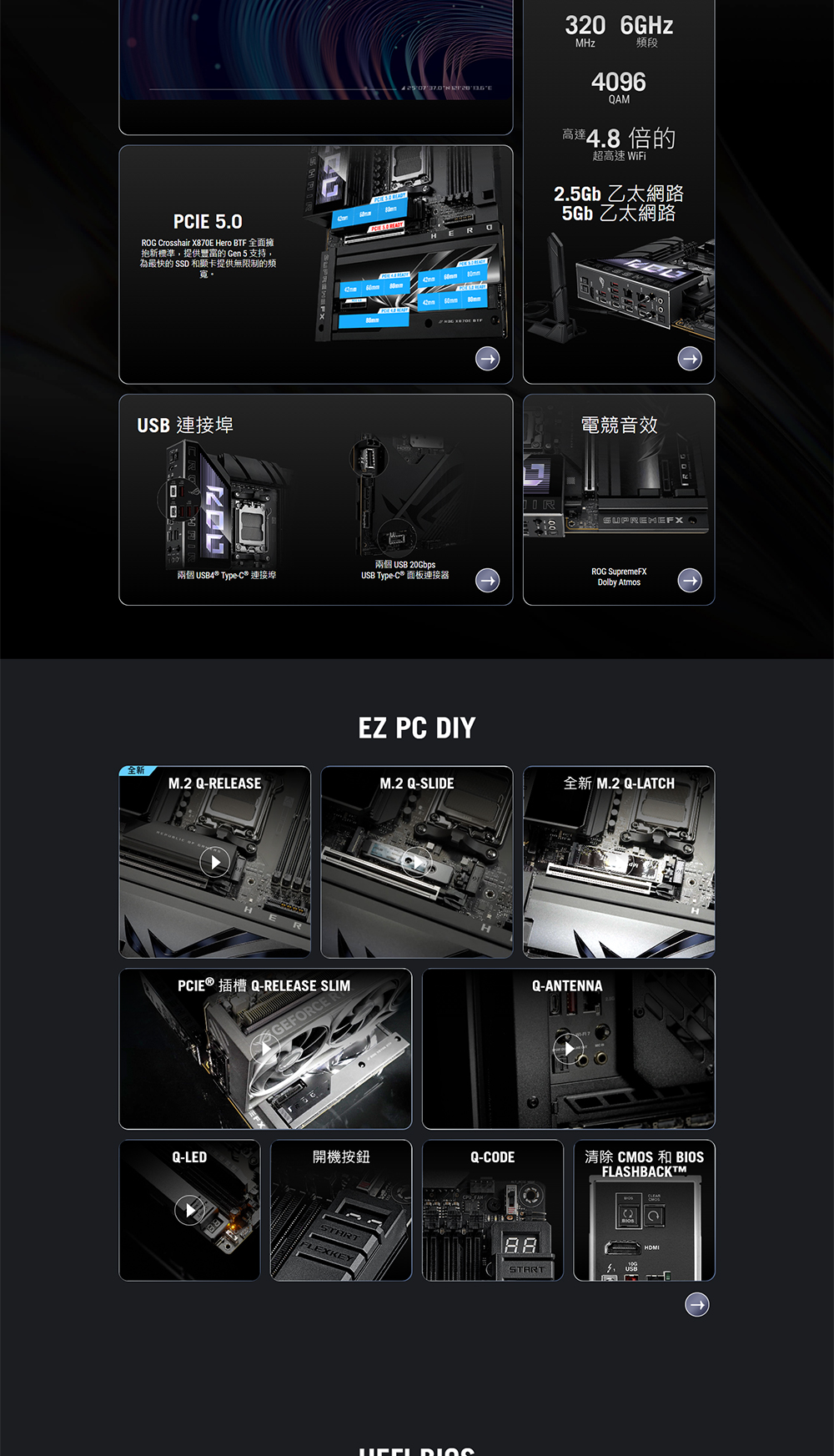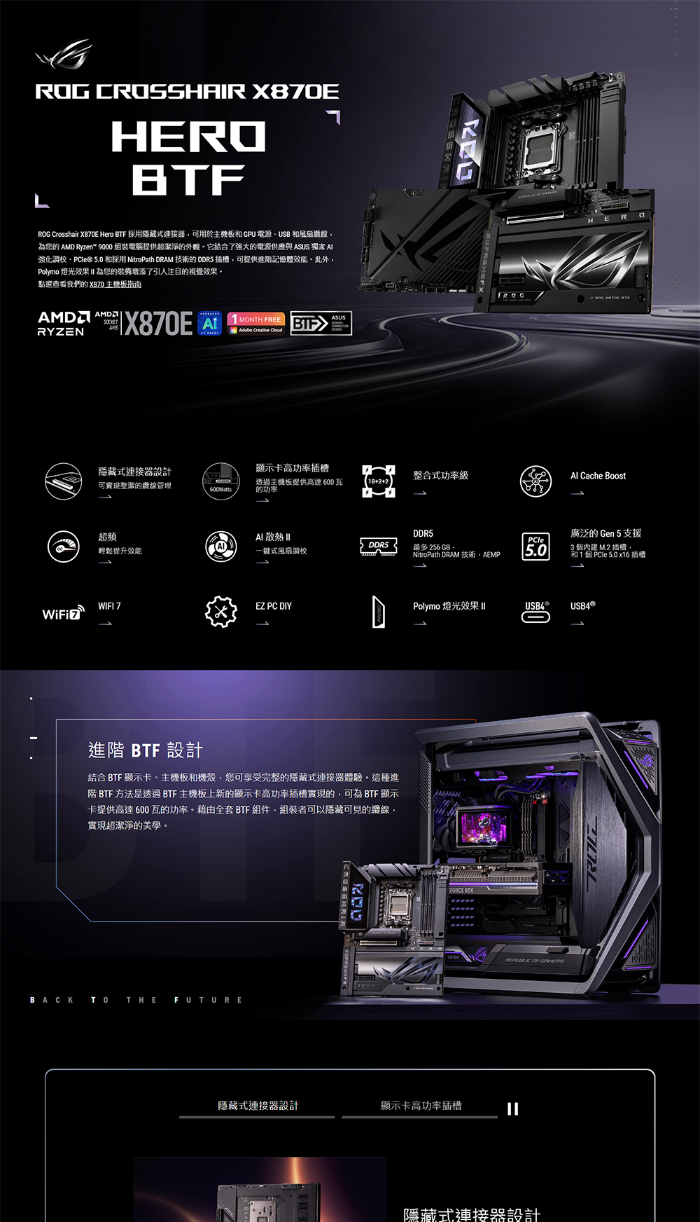 [ASUS華碩]《ROG-CROSSHAIR-X870E-HERO-BTF》支援背插/ATX/LAN 5G+Intel 2.5G+Wi-Fi 7