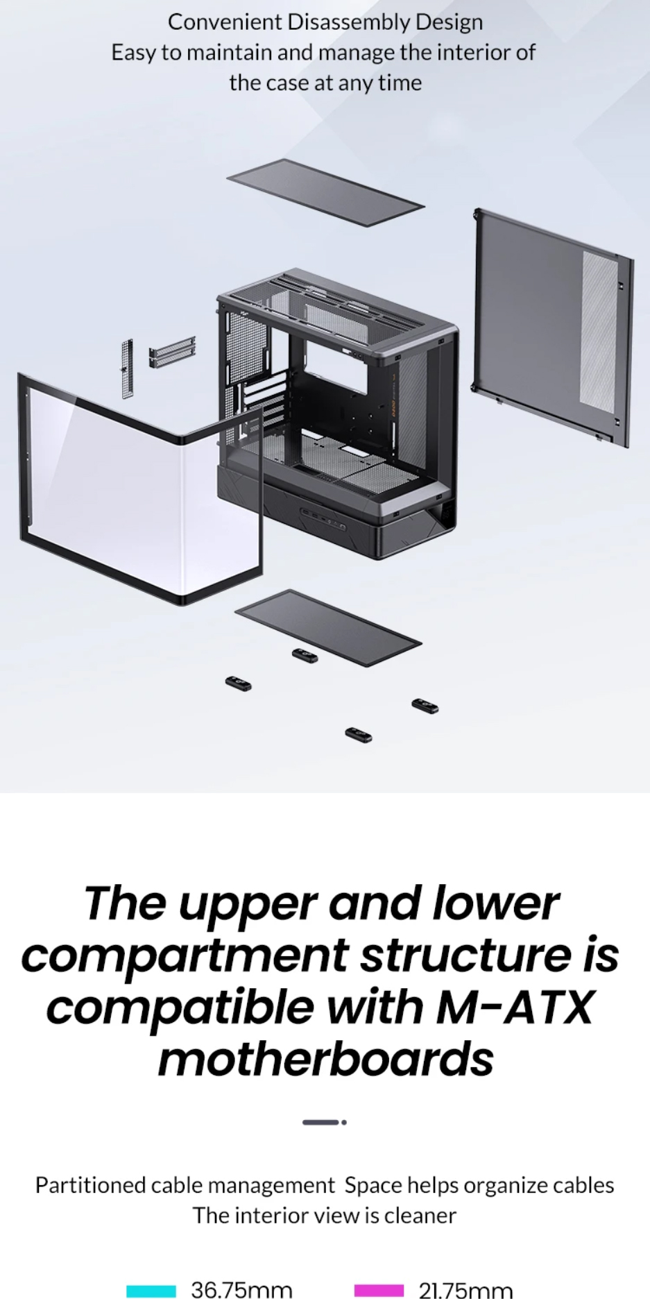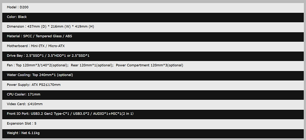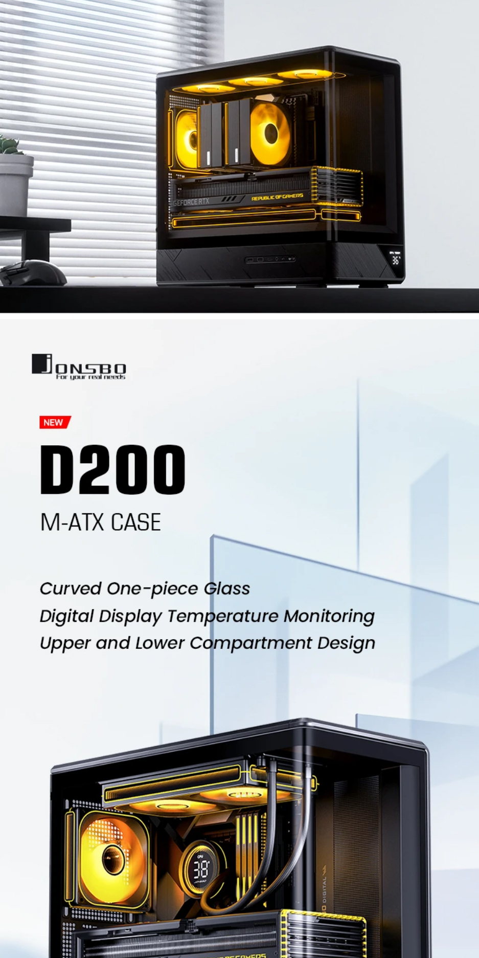[JONSBO 喬思伯]《D200 白》M-ATX/Type-C/曲面環景玻璃/溫度顯示/分艙設計/顯卡410mm/塔散171mm