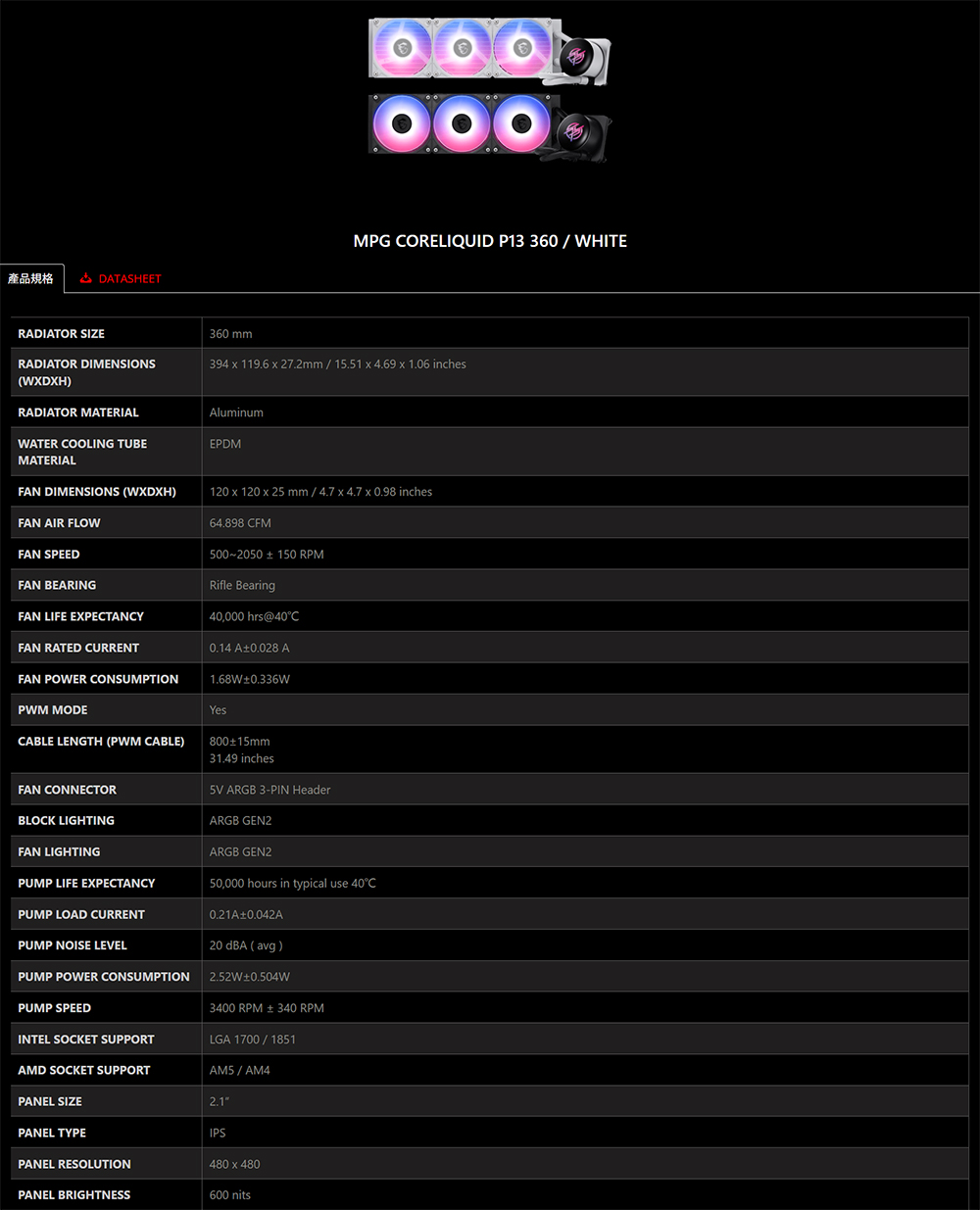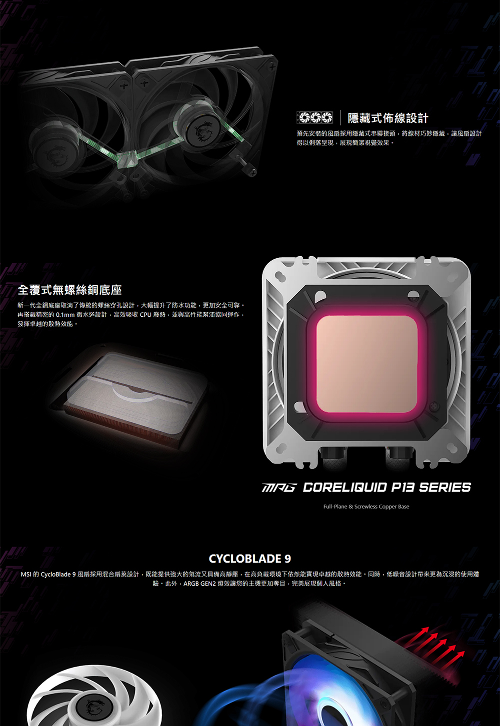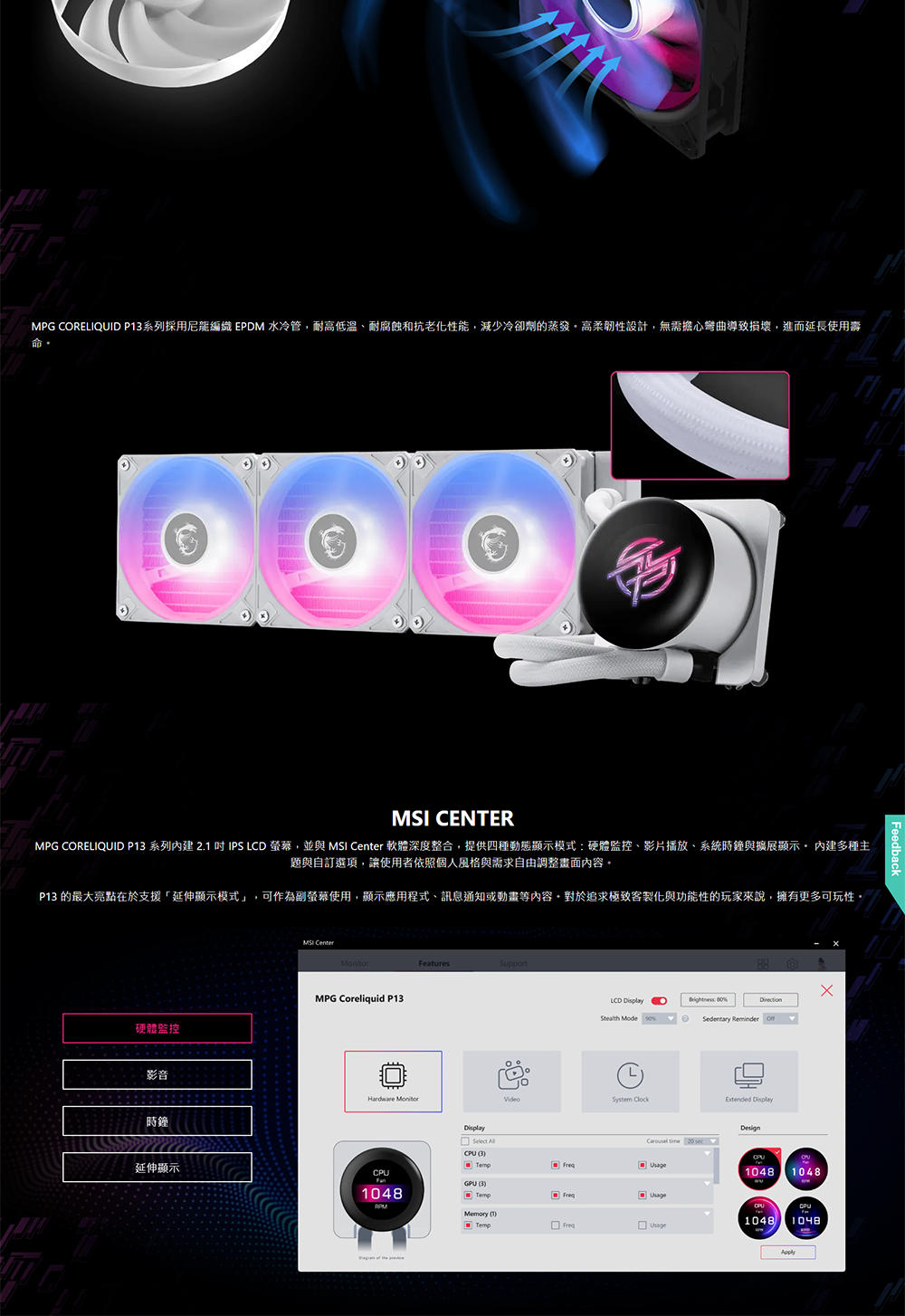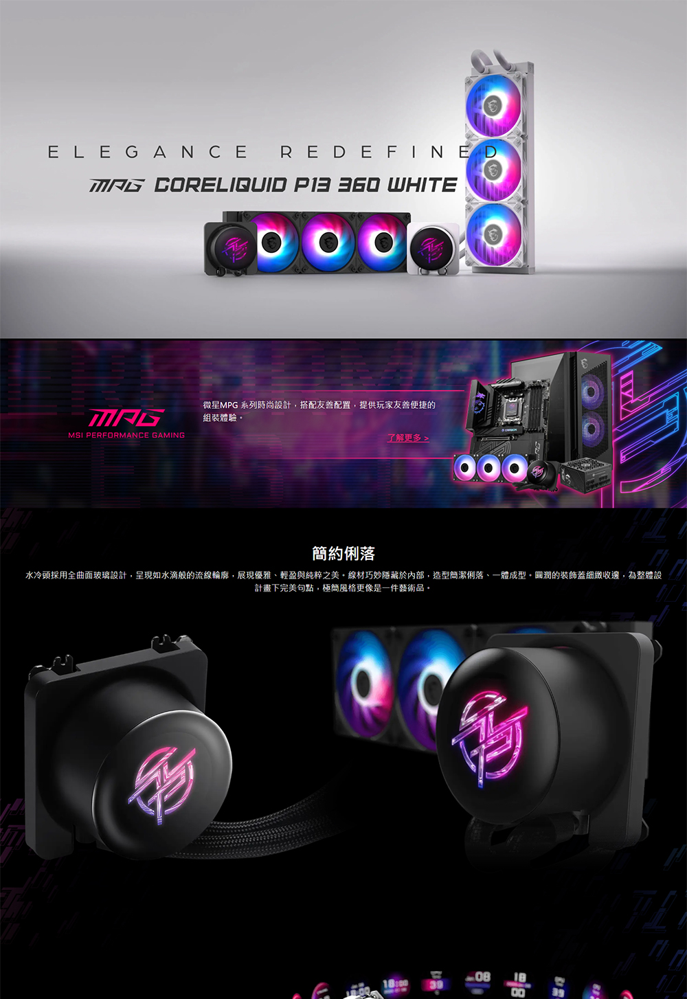 [MSI 微星]《MPG CORELIQUID P13 360 黑》360mm/2.1吋LCD曲面玻璃水冷頭/預裝風扇/12cm風扇*3/三年保/註冊升級5年保