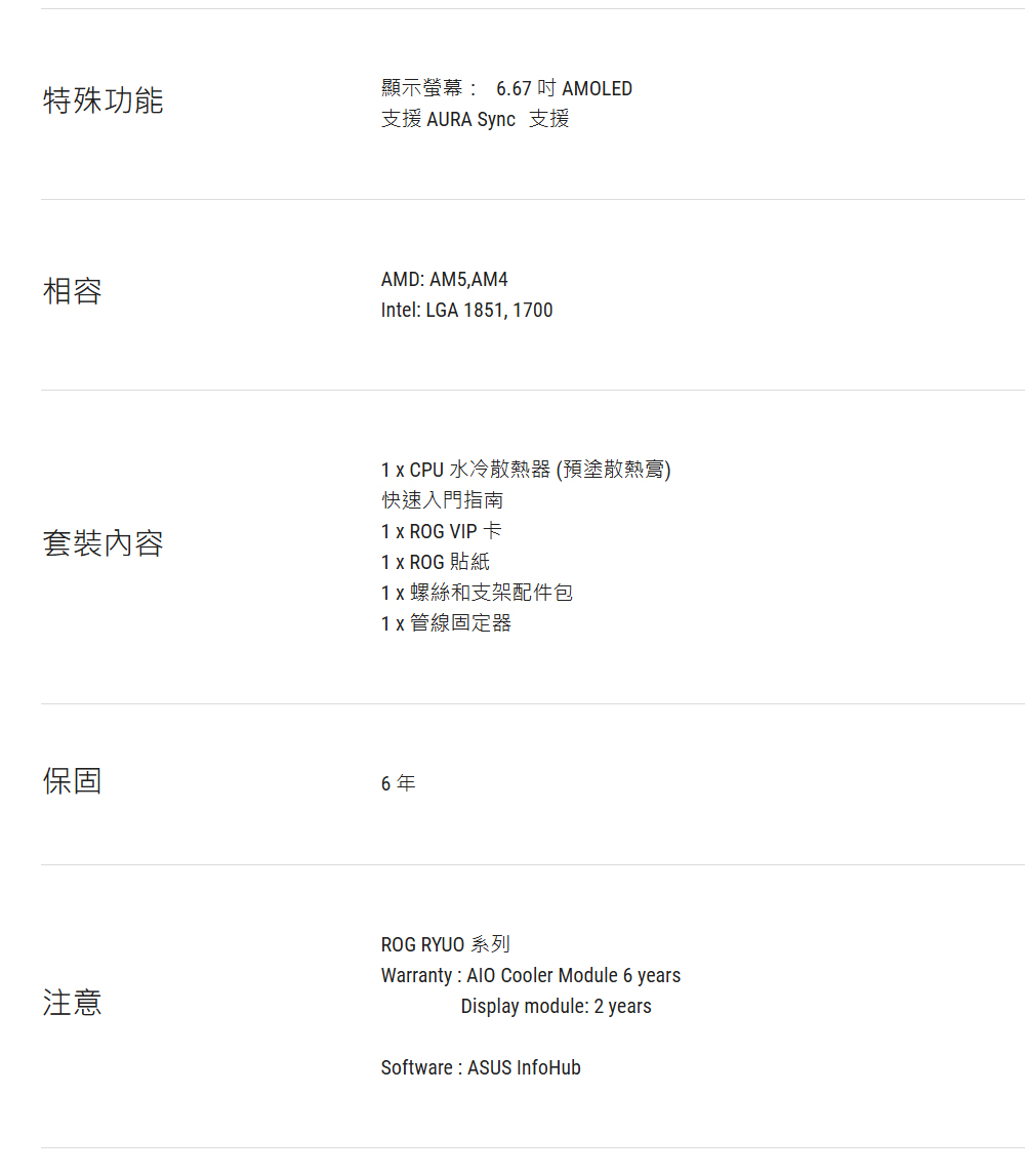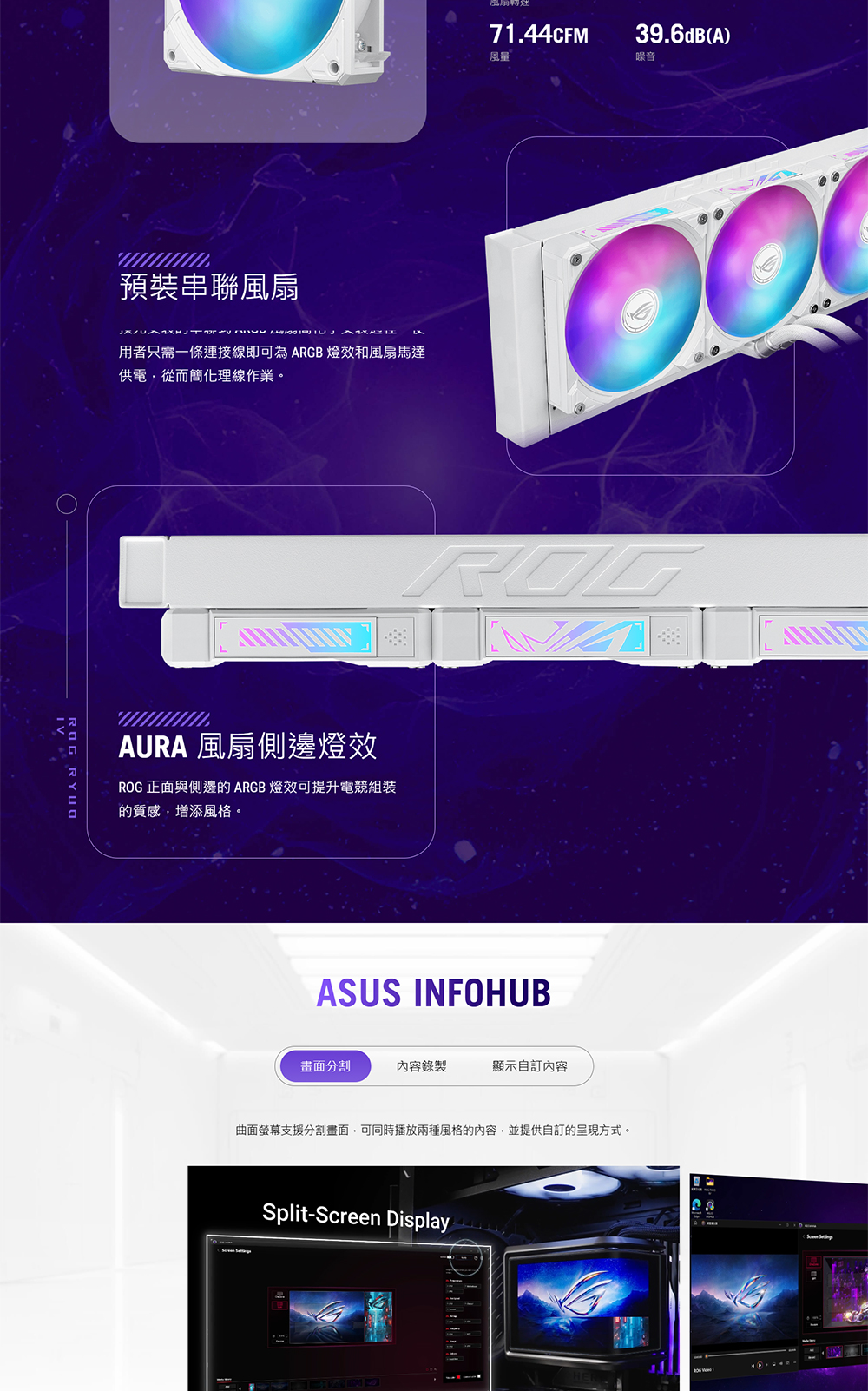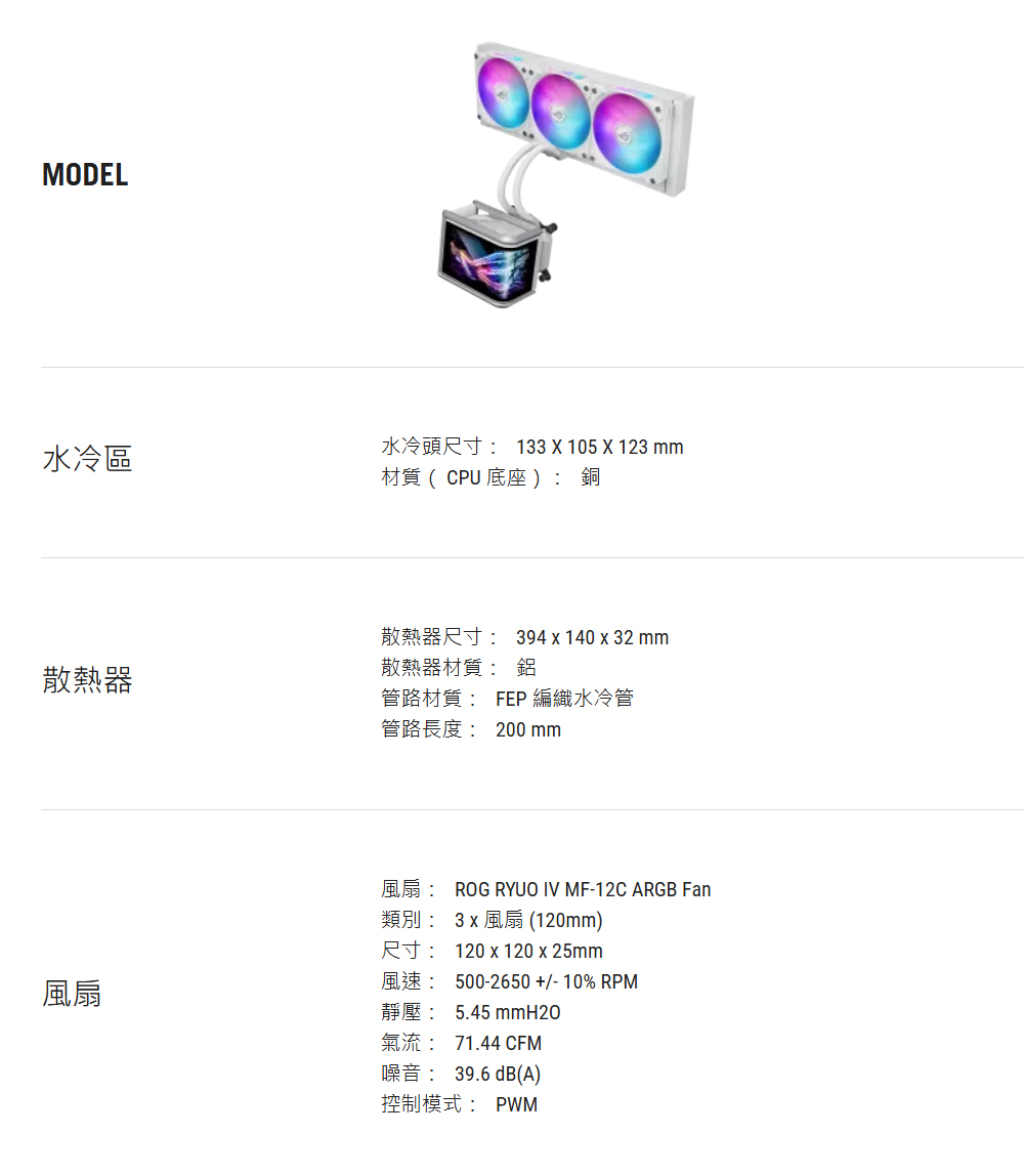 [ASUS華碩]《ROG RYUO IV SLC 360 ARGB 龍王四代 競潮白》360mm/全台第一款上市的曲面短管水冷/6.67″AMOLED曲面水冷頭/預裝風扇/12cm風扇*3/六年保/送ROG Herculx顯卡支架